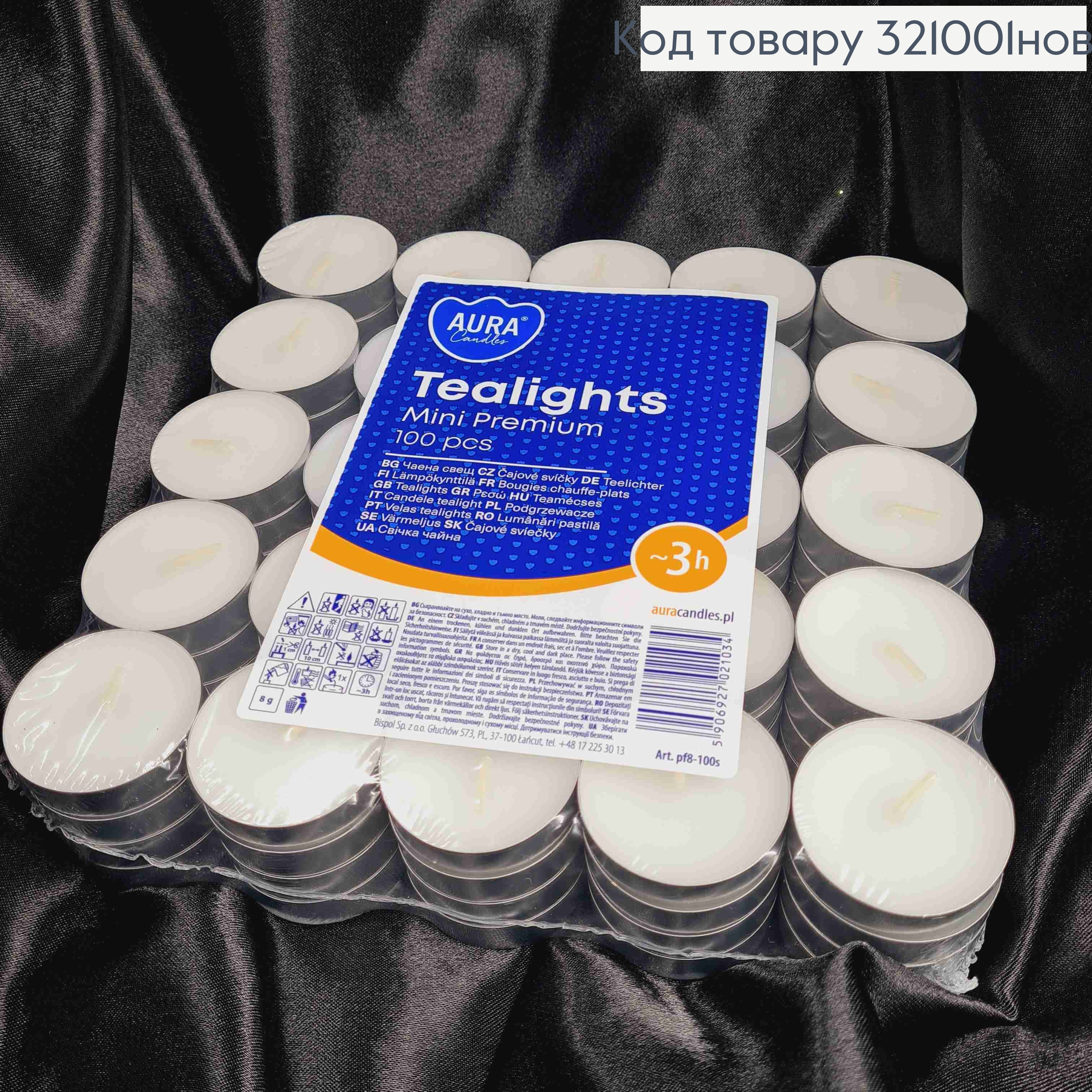 НАБІР свічок таблеток 100шт, 3год.горіння, 8г.,чайні свічки, miniPremium,Bispol