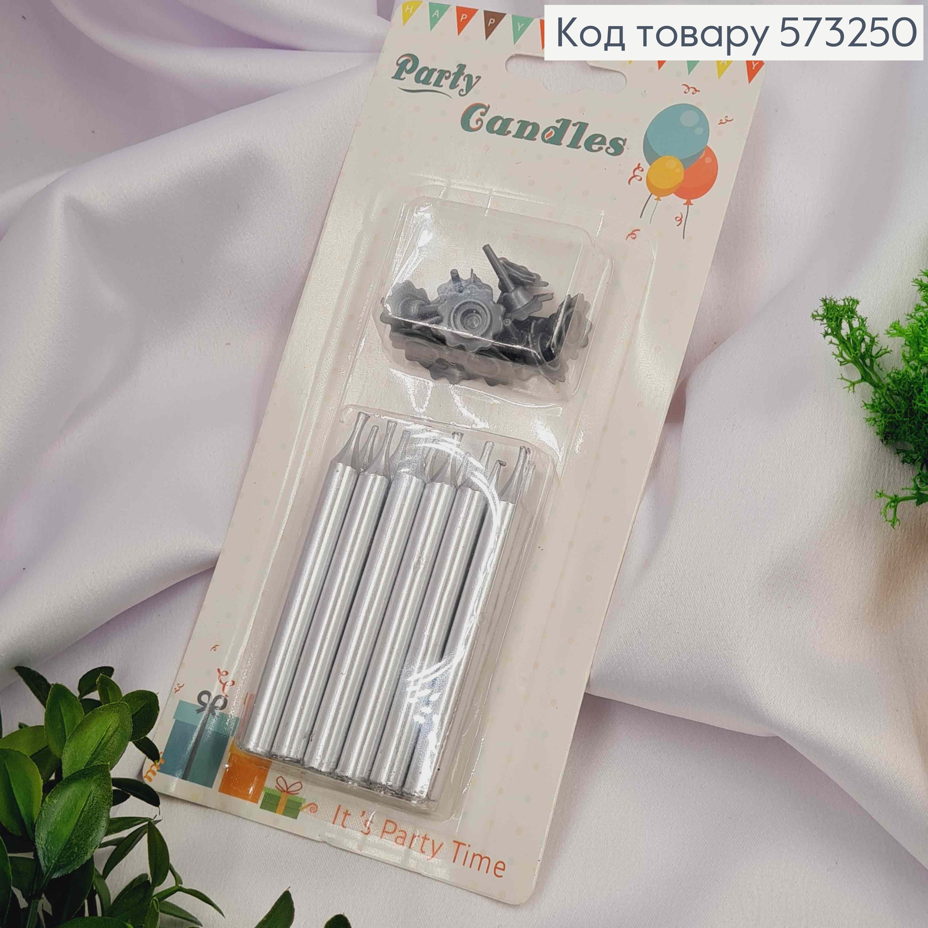 Набір свічок в торт 8см, (12шт), СРІБНОГО кольору, на підставці,