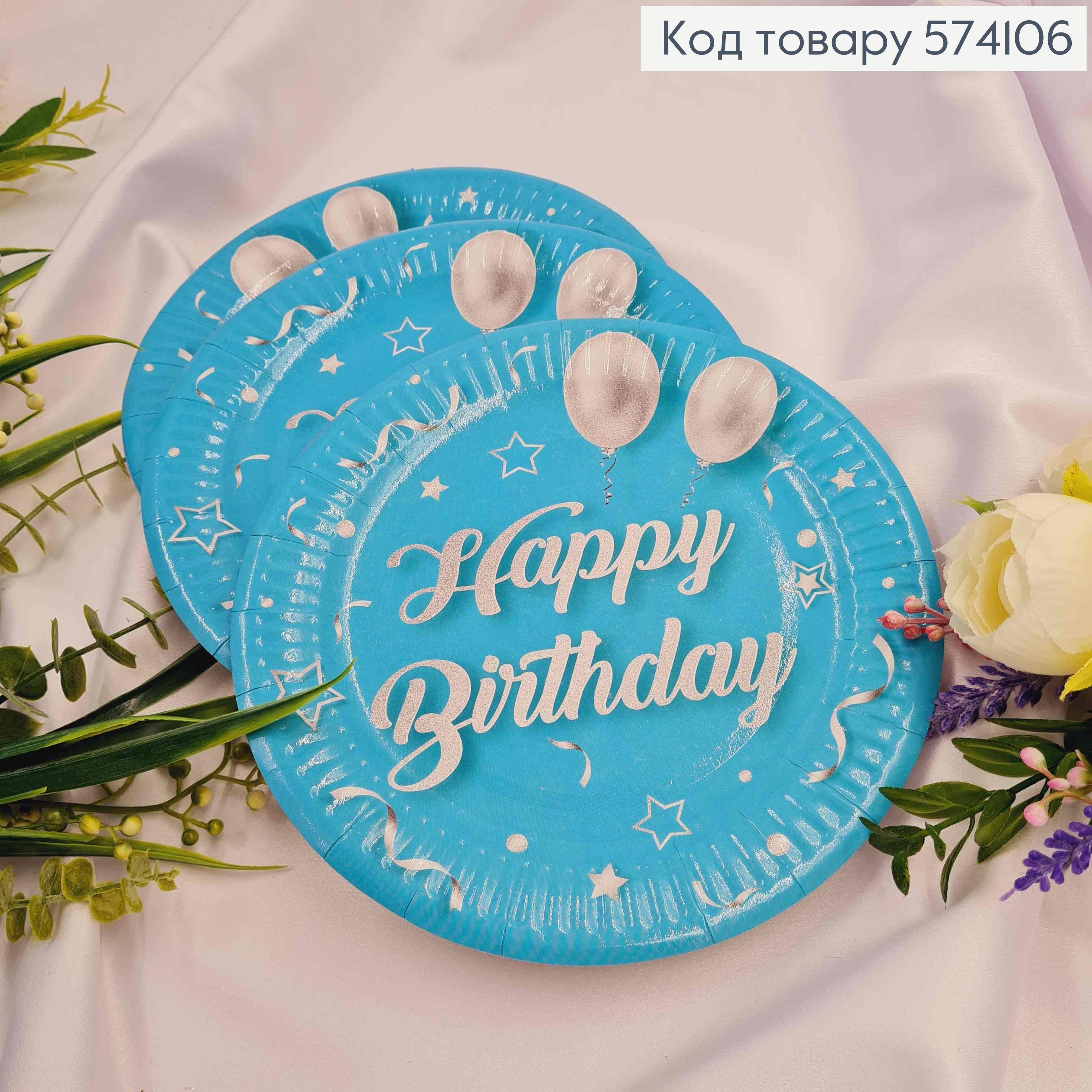 Набір тарілок паперових, "HAPPY BIRTHDAY", блакитного кольору, 10шт/уп, 18см
