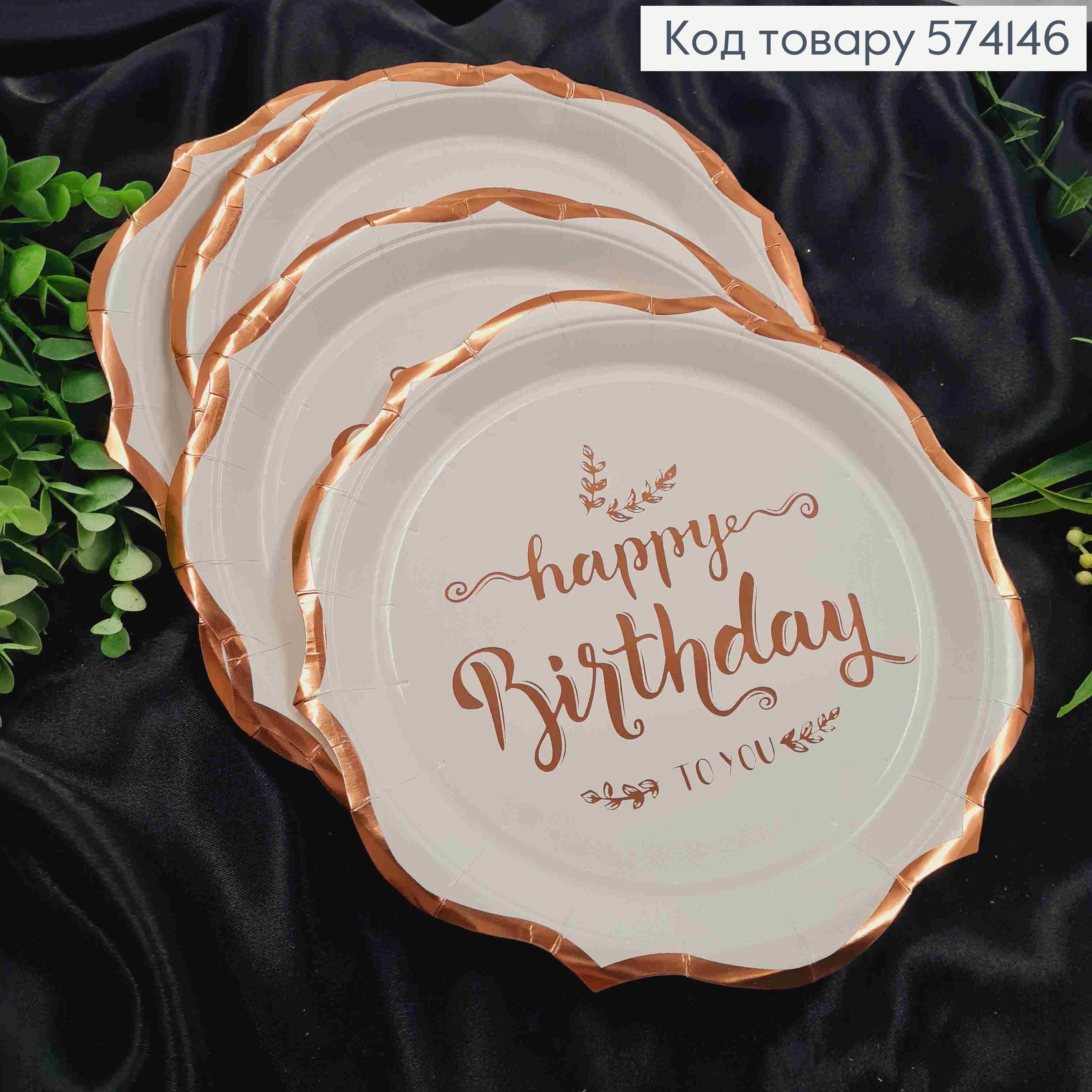 Набір тарілок паперових, з написом "Happy Birthday" Рожевим-Золотом на Білому фоні, 10шт/уп, 18см 574140 фото