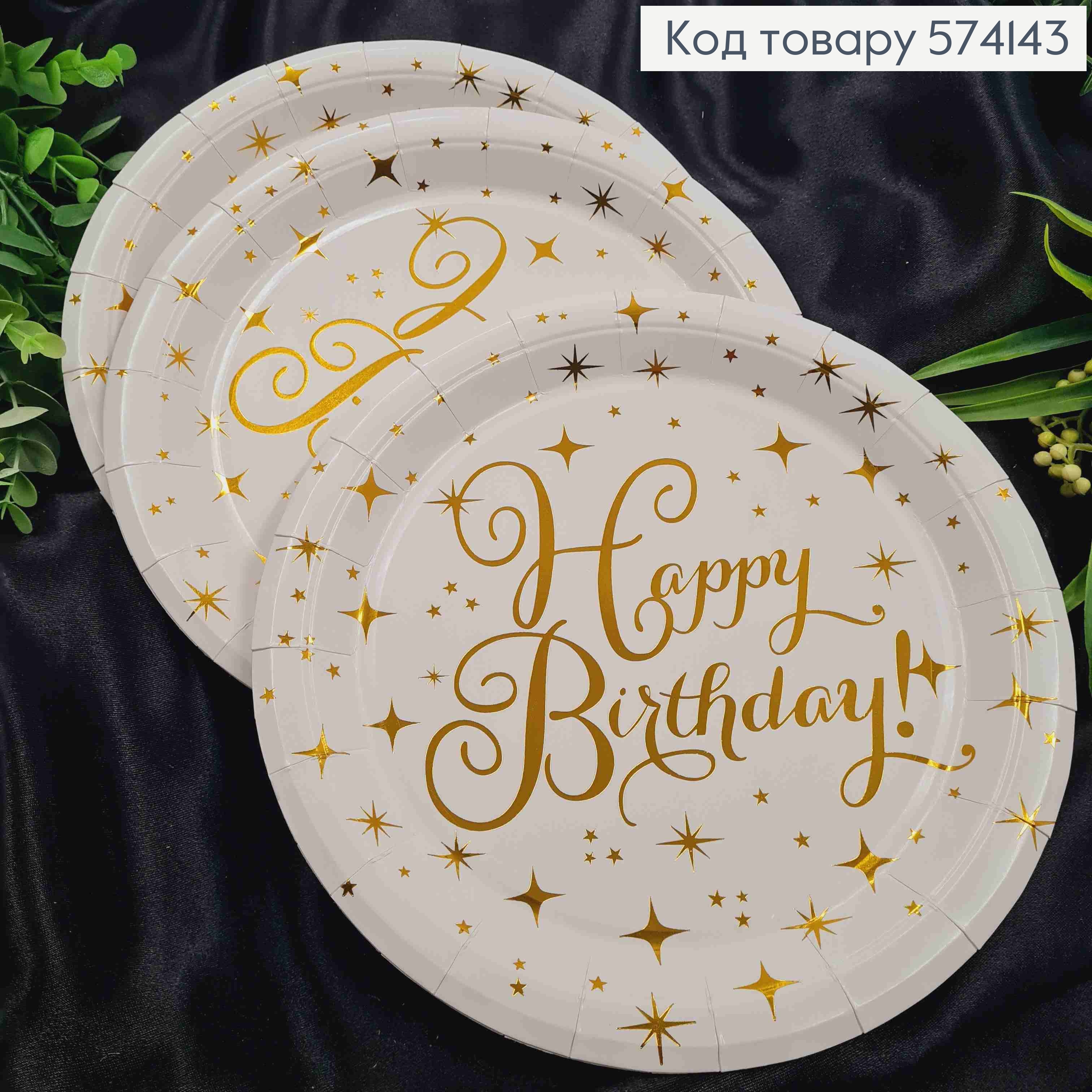 Набір тарілок паперових, з написом "Happy Birthday" Золотом на Білому фоні, 10шт/уп, 18см 574139 фото