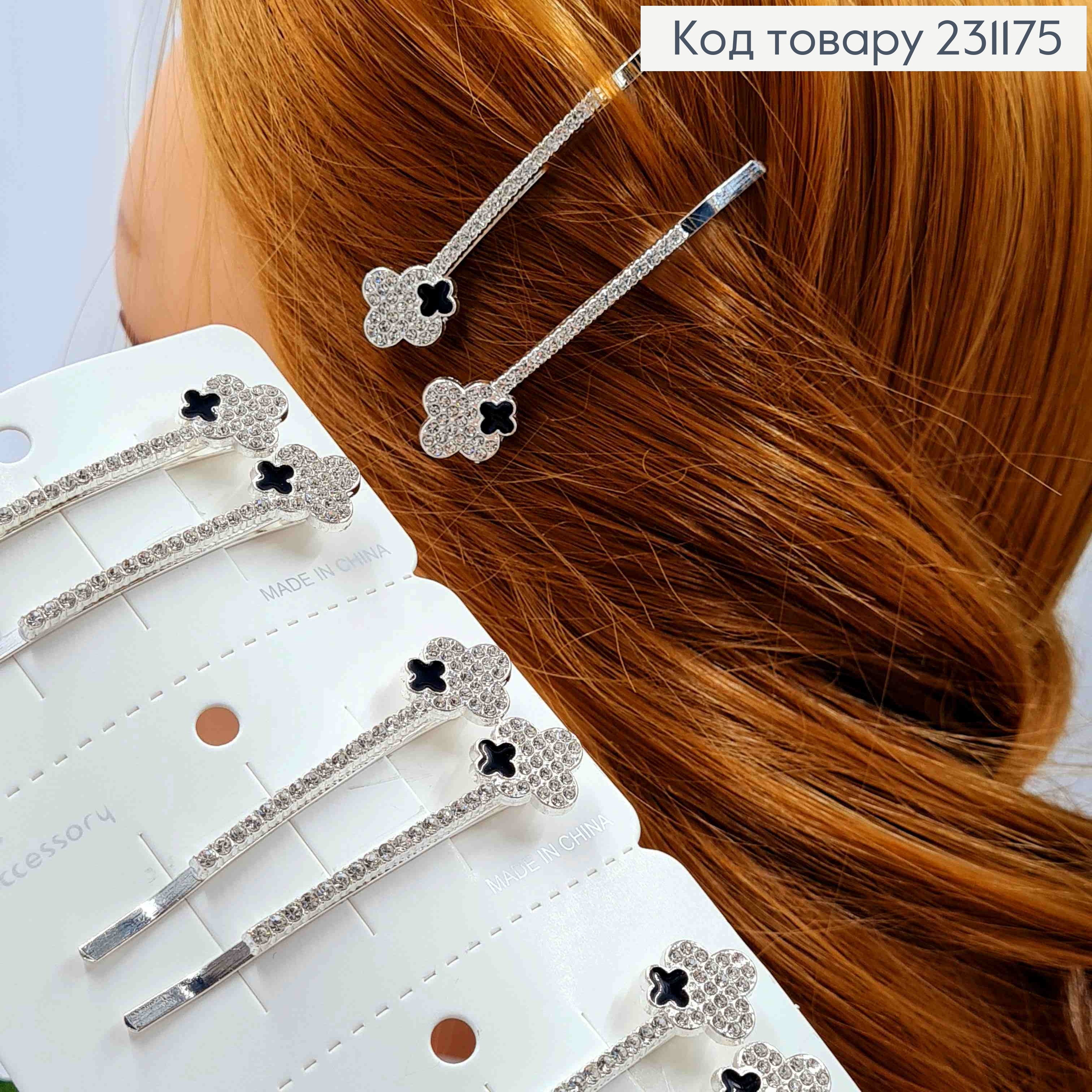 Набір невидимок(2шт), ВАН КЛІФ з Камінням та Чорною емаллю, 6,5см, Срібного кольору, ціна за2шт