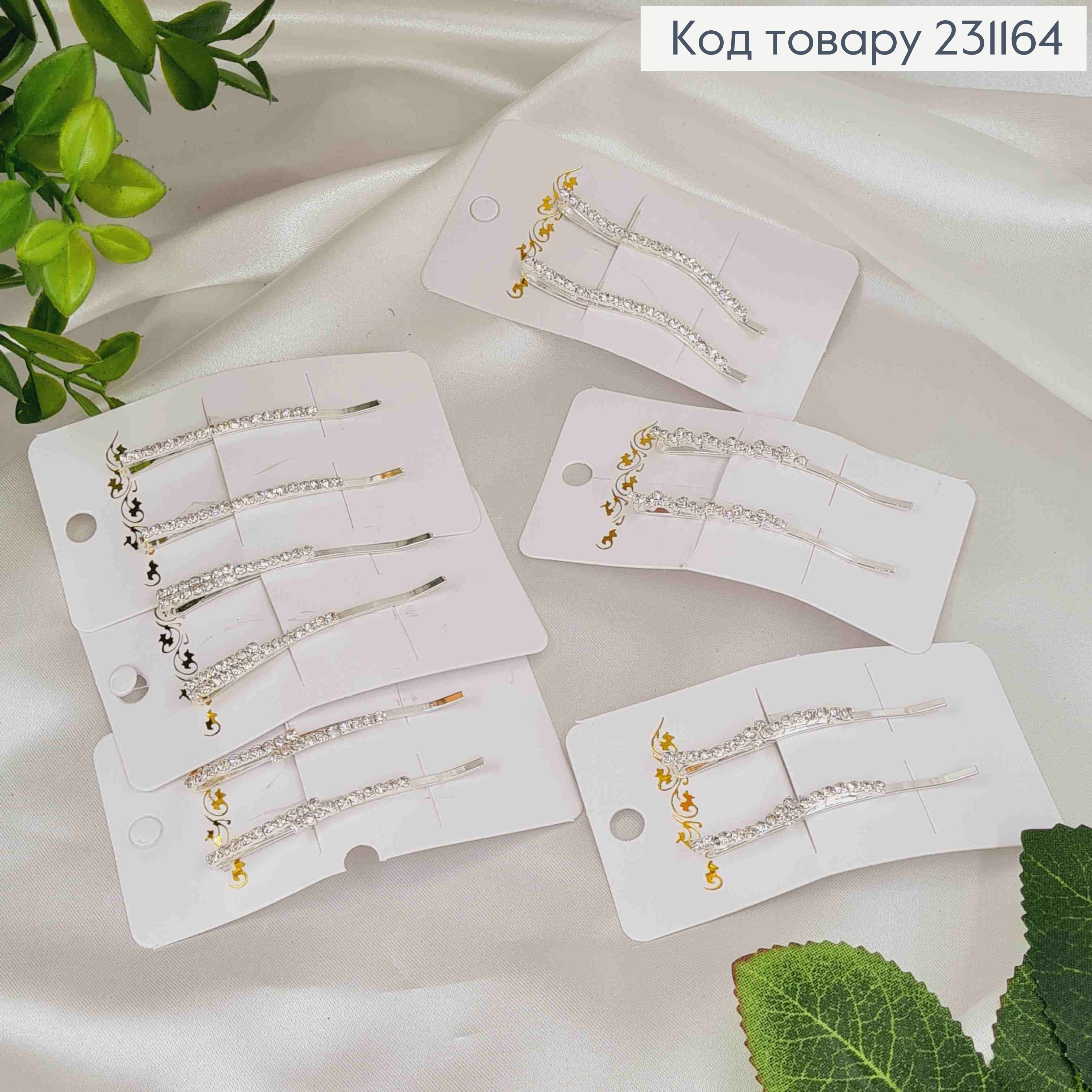Невидимка метал, срібного кольору, різної форми, в камінцях 5см, 2шт/наб.