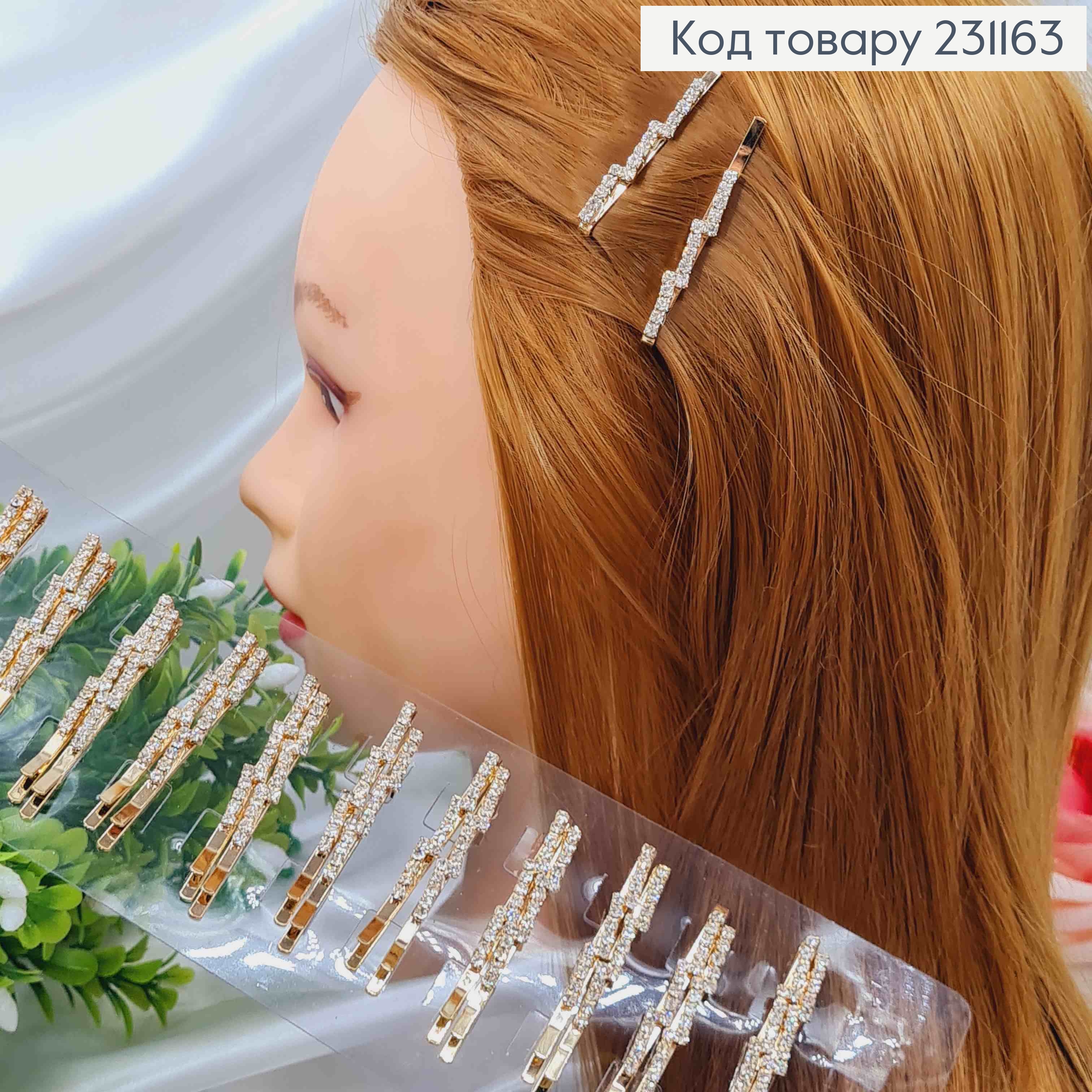 Набір невидимок (2шт), з квадратним Блискучим каменем, 5см, Золотого кольору 231193 фото