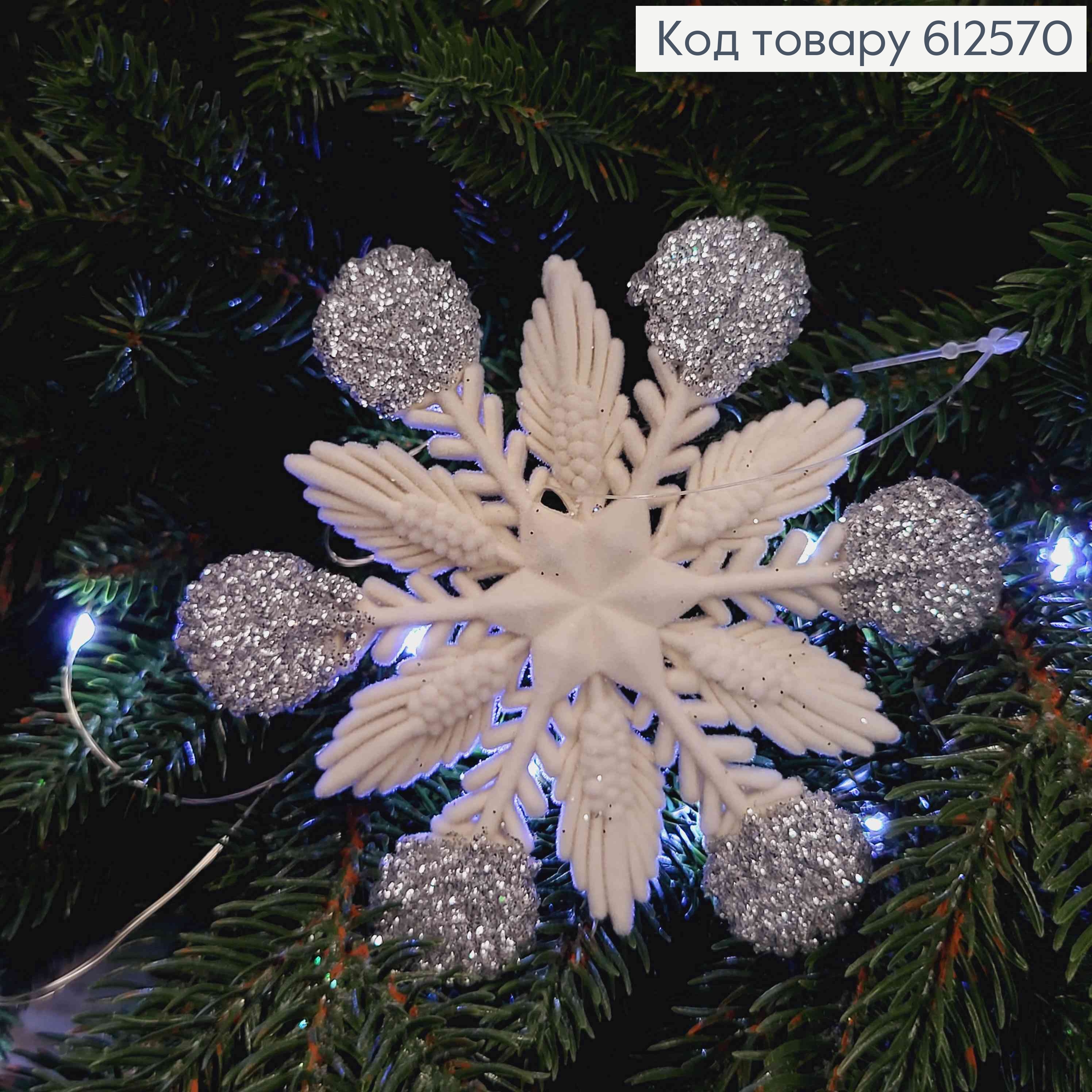 Набір  Сніжинок,  блиск, БІЛИЙ колір, 10шт/уп, 13см діаметр,  новорічні прикраси пластикові,Україна 612763 фото