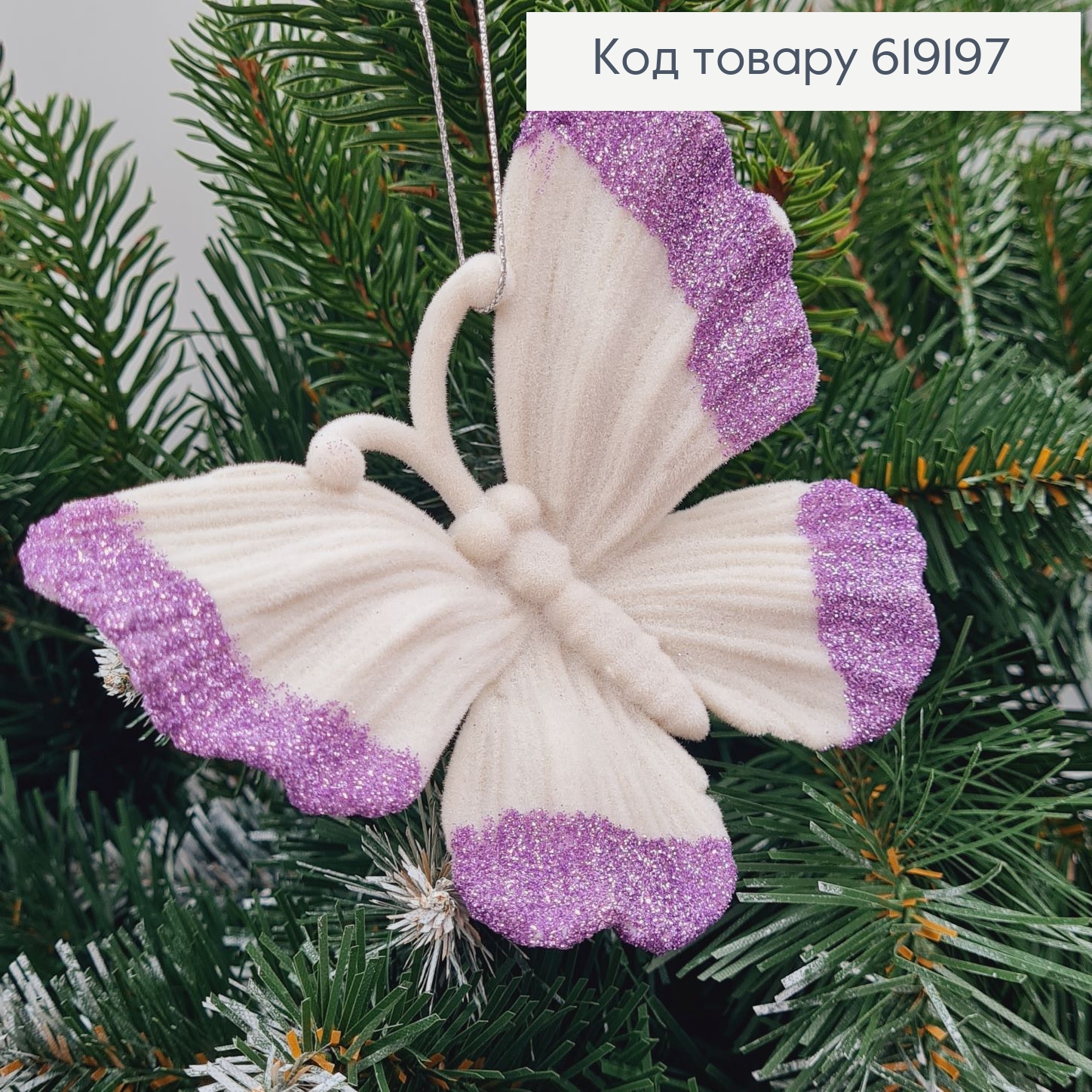 Новорічна фігура Бархат Метелик БІЛИЙ+ФІОЛЕТ блиск, 11*10см, Україна