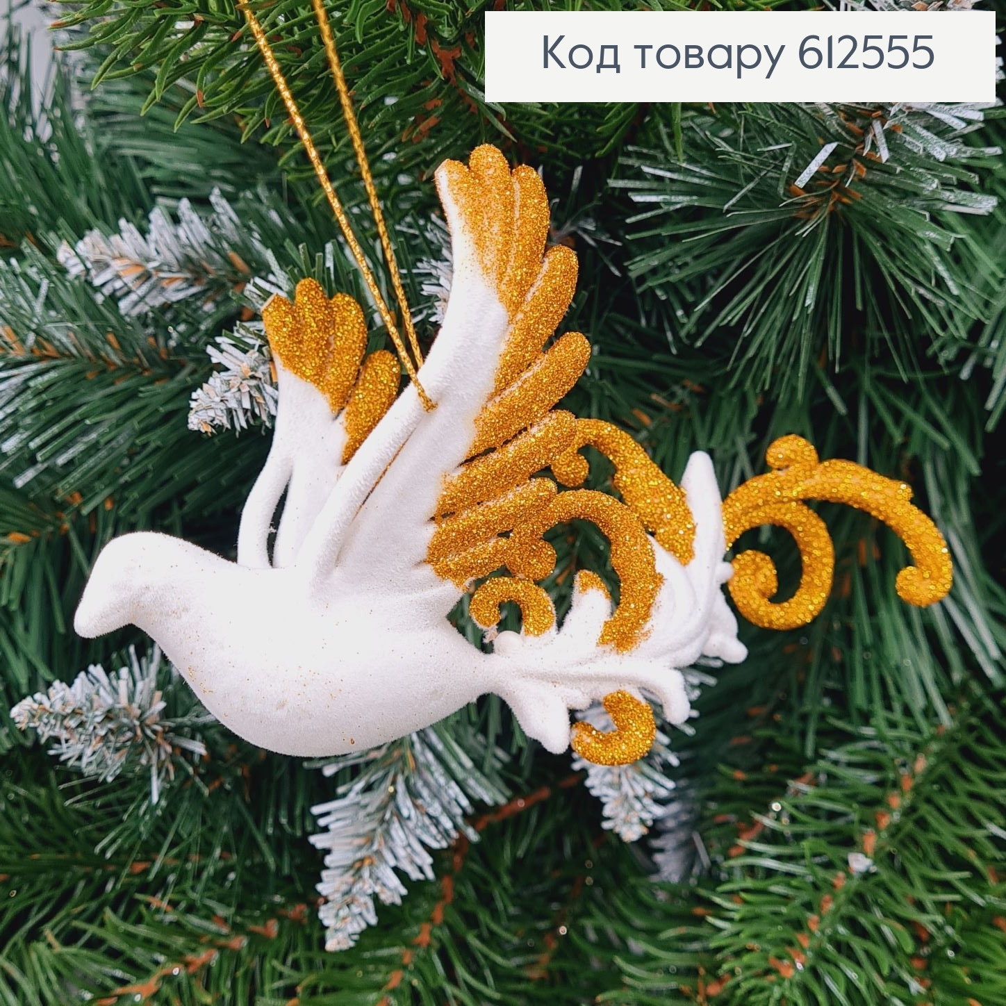 Новорічна фігура Бархат Жарптиця БІЛА+ЗОЛОТО 14*7см, Україна