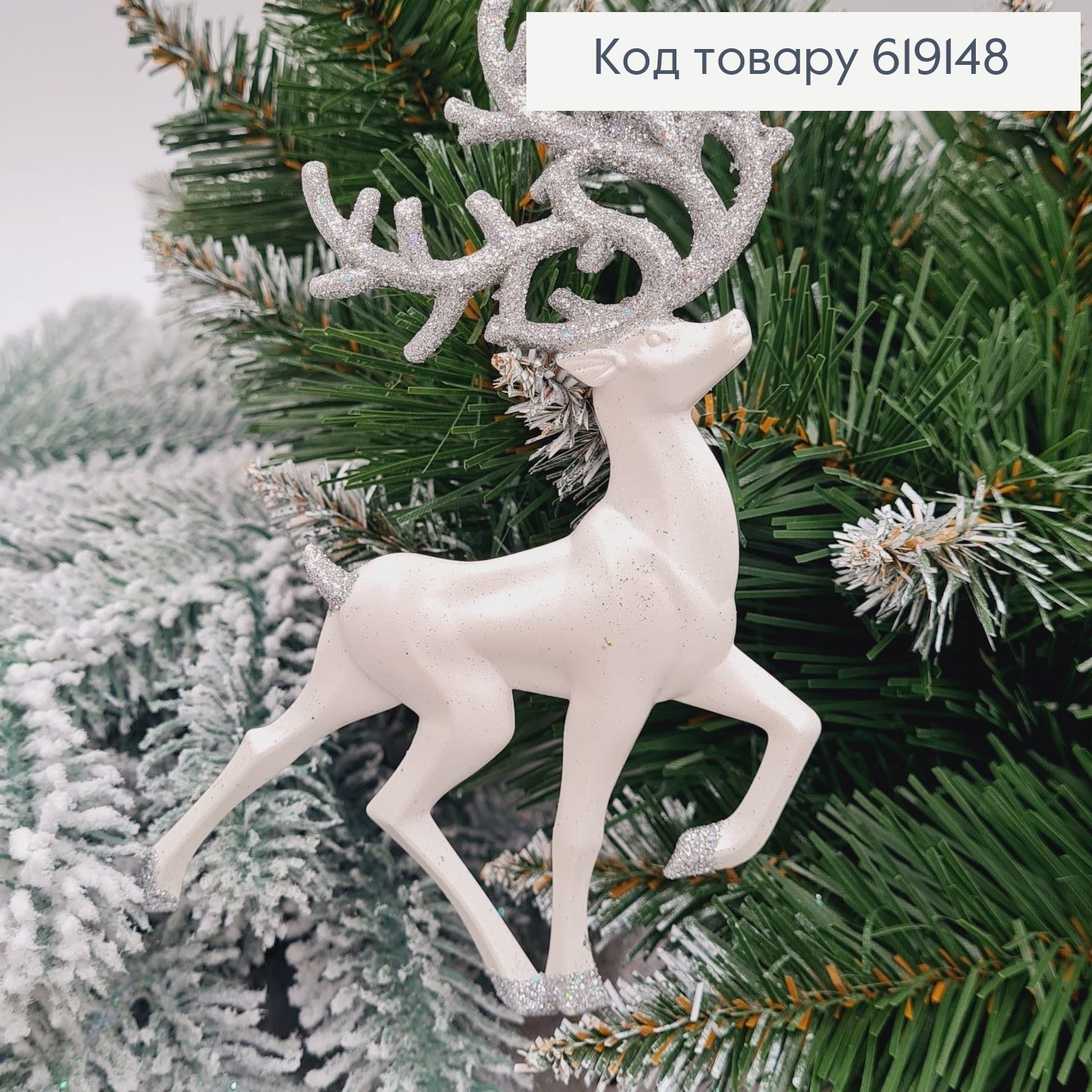 Новорічна фігура "ОЛЕНЬ", колір БЛИСК БІЛИЙ, пластик, 15*7см, Україна 619399 фото