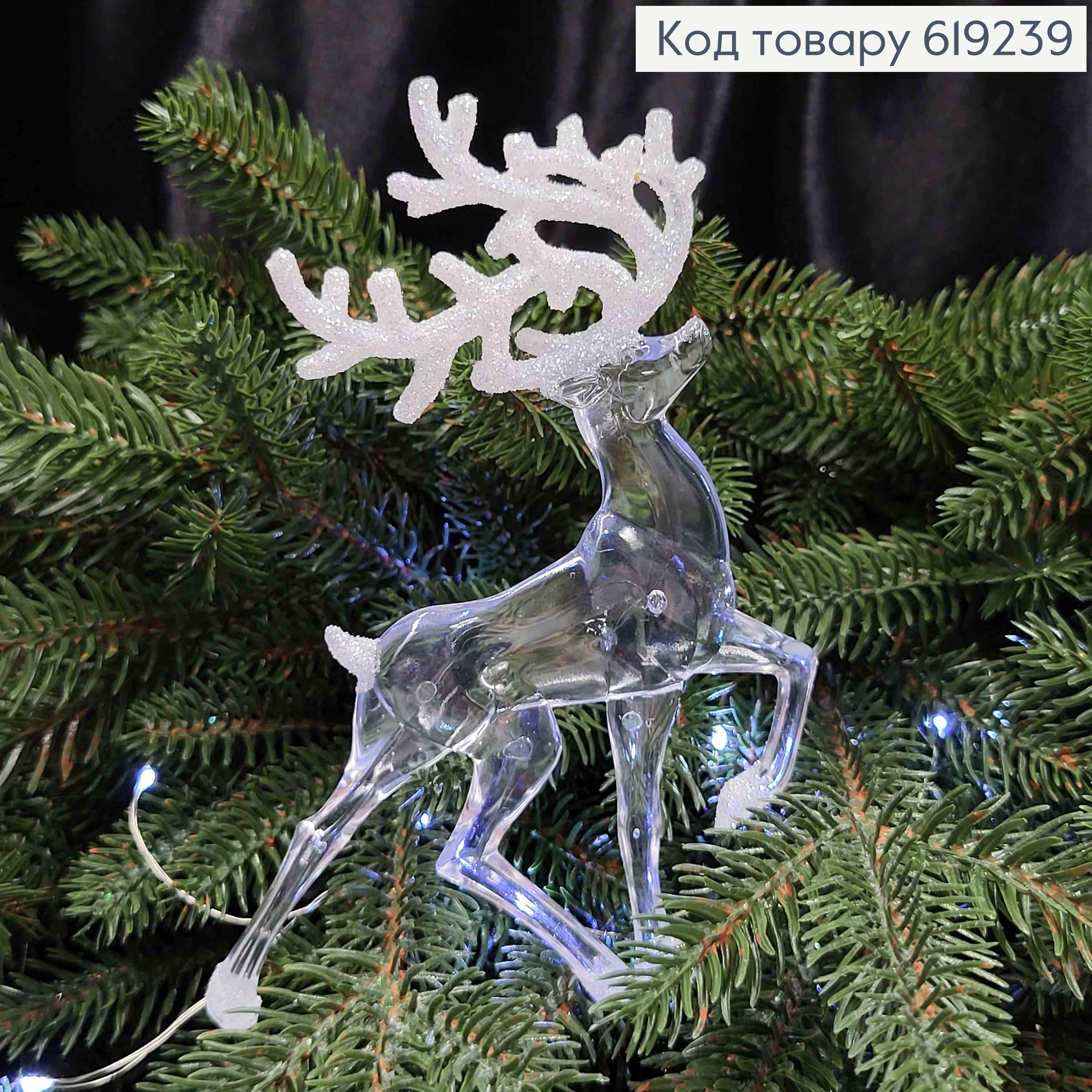 Новорічна фігура "ОЛЕНЬ", колір ПРОЗОРИЙ+блиск СРІБЛО, пластик, 15*7см, Україна 619397 фото