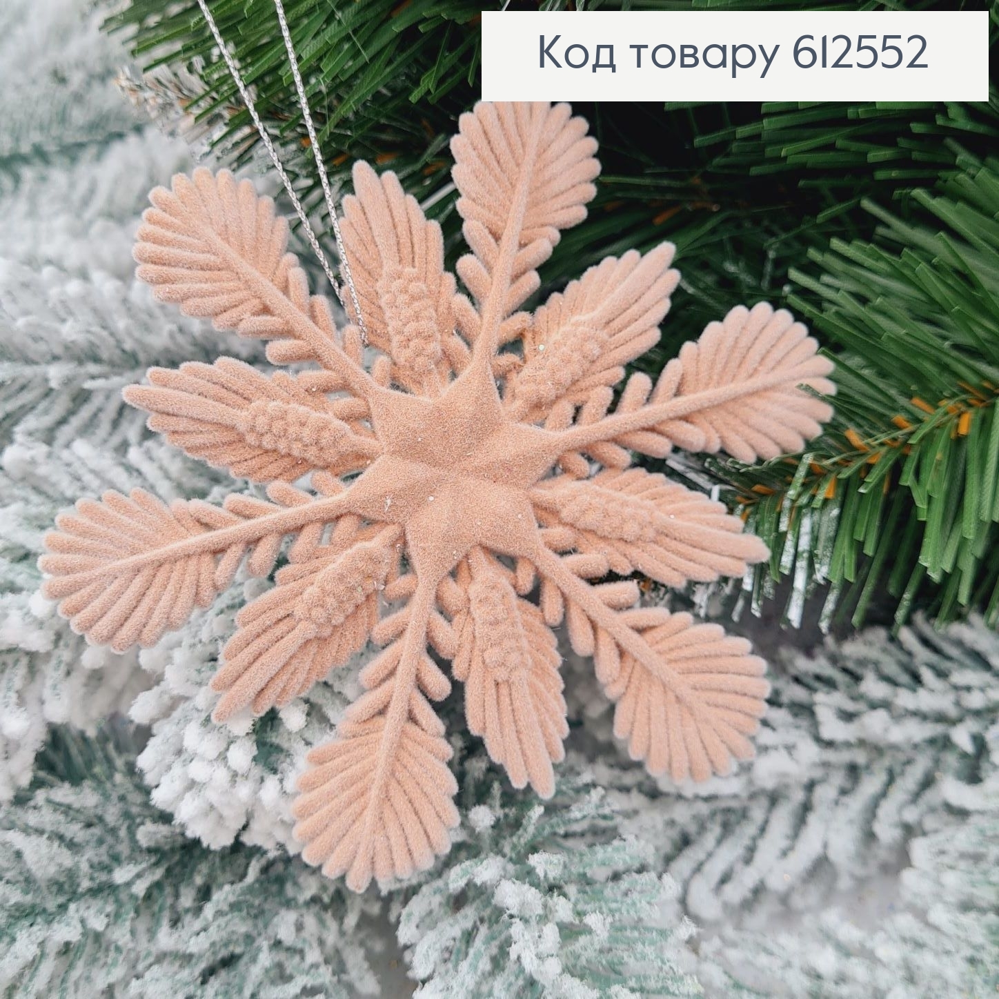 Фігурка Сніжинка ПЕРСИКОВА, матова, декорована блиском, розмір 11см, пластик, Україна 612652 фото