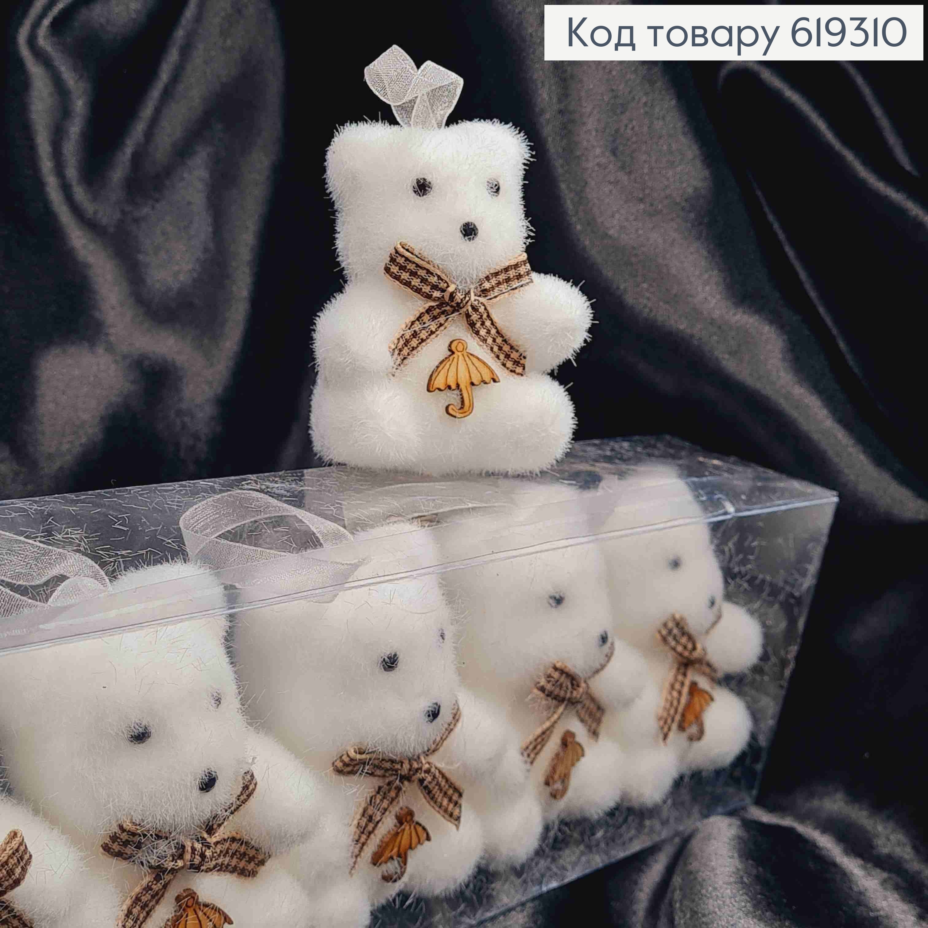 Новорічна фігурка ВЕДМЕДИК, бархат БІЛОГО кольору, 7*5см