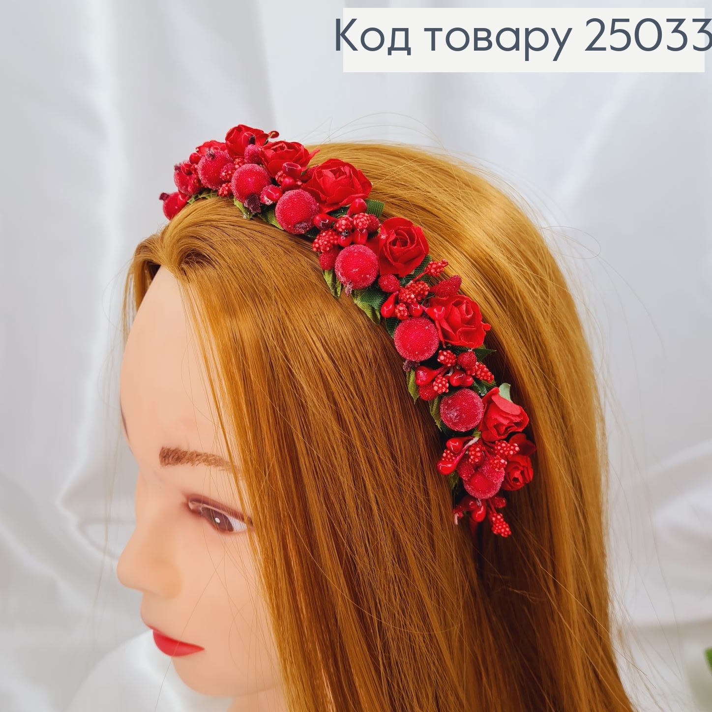 Обруч-віночок, плетений,  Троянди з Калиною, ЧЕРВОНОГО кольору, ручна робота, Україна 287040 фото