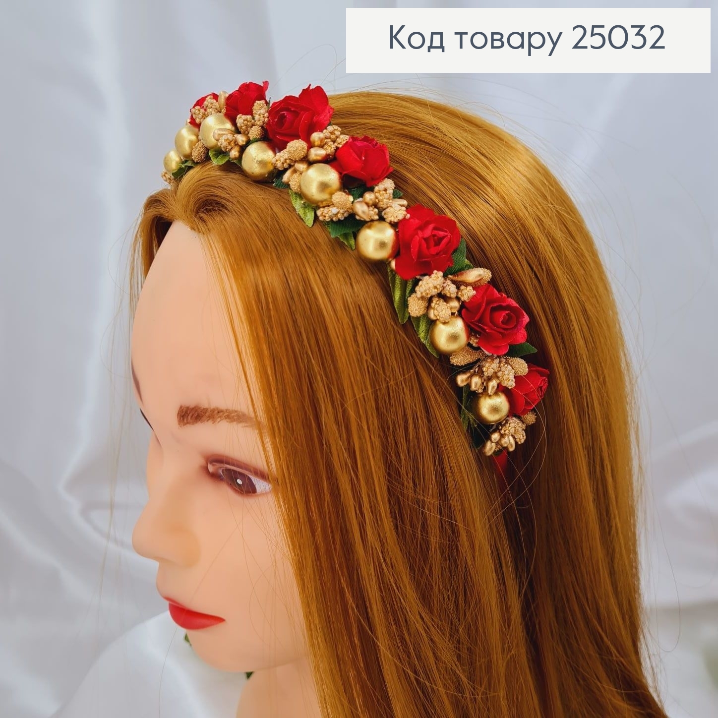 Обруч-віночок, плетений,  Троянди з Калиною, ЧЕРВОНОГО кольору, ручна робота, Україна 287040 фото