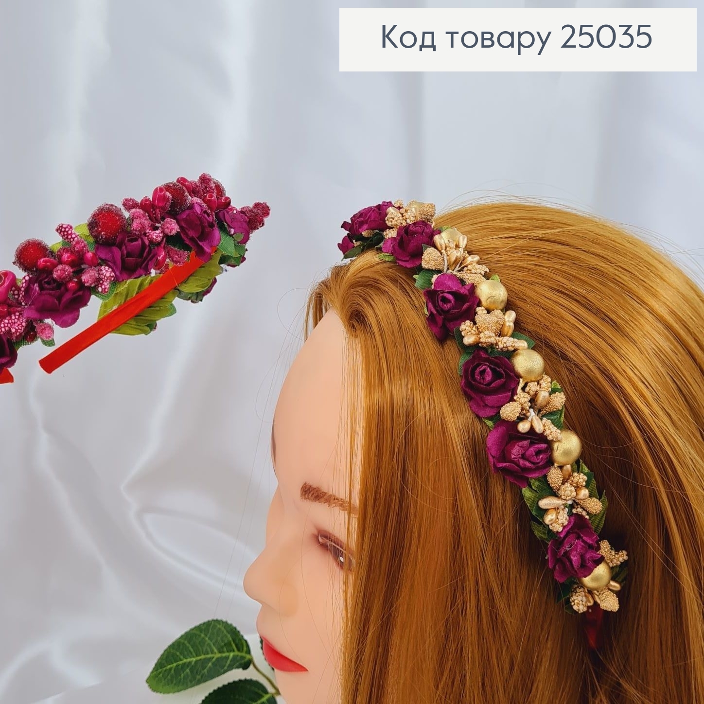 Обруч-віночок, плетений,  Троянди з Калиною, ЧЕРВОНОГО кольору, ручна робота, Україна 287040 фото