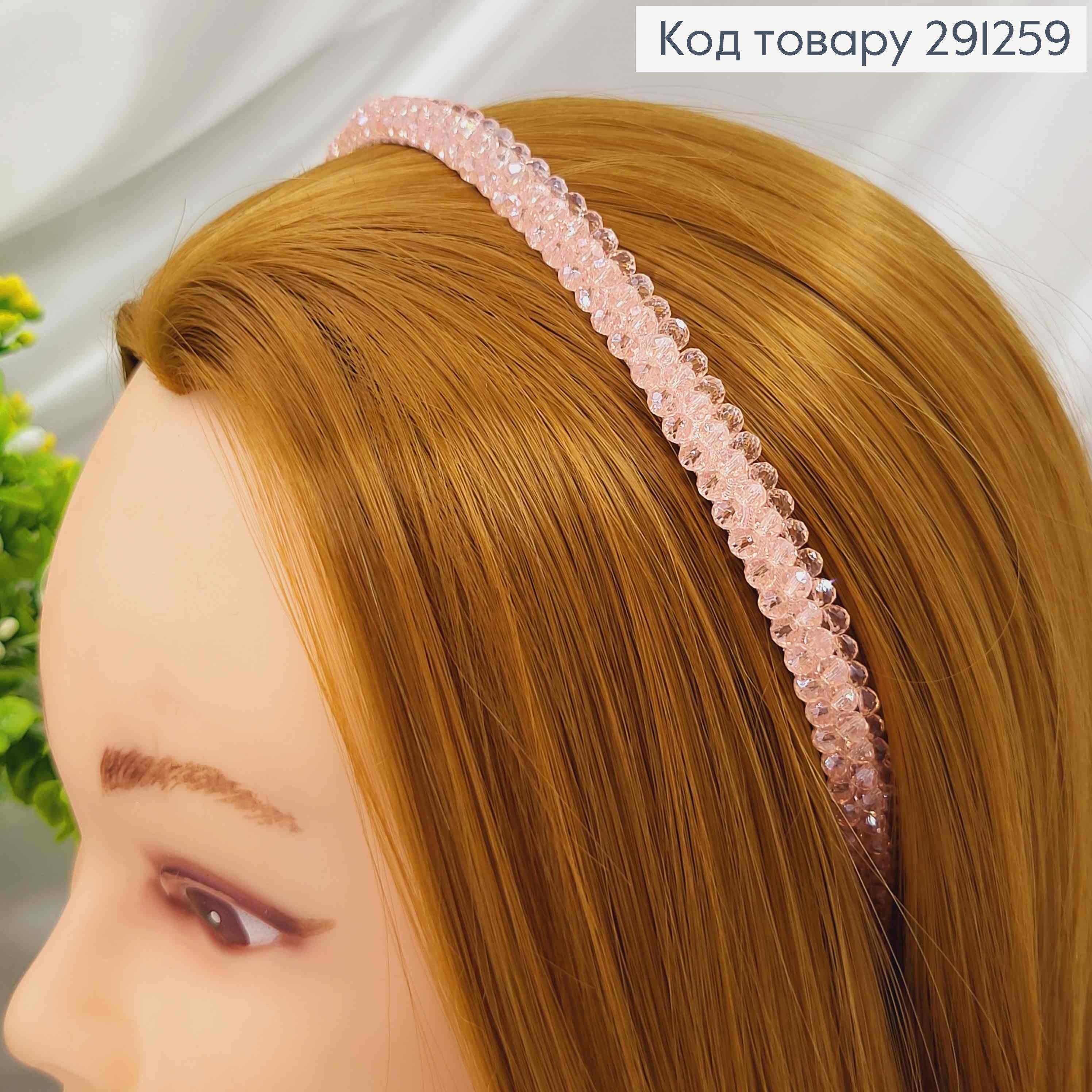 Обруч метал, плетений склярусом в 3 ряди, РОЖЕВИЙ, шириною 1см.