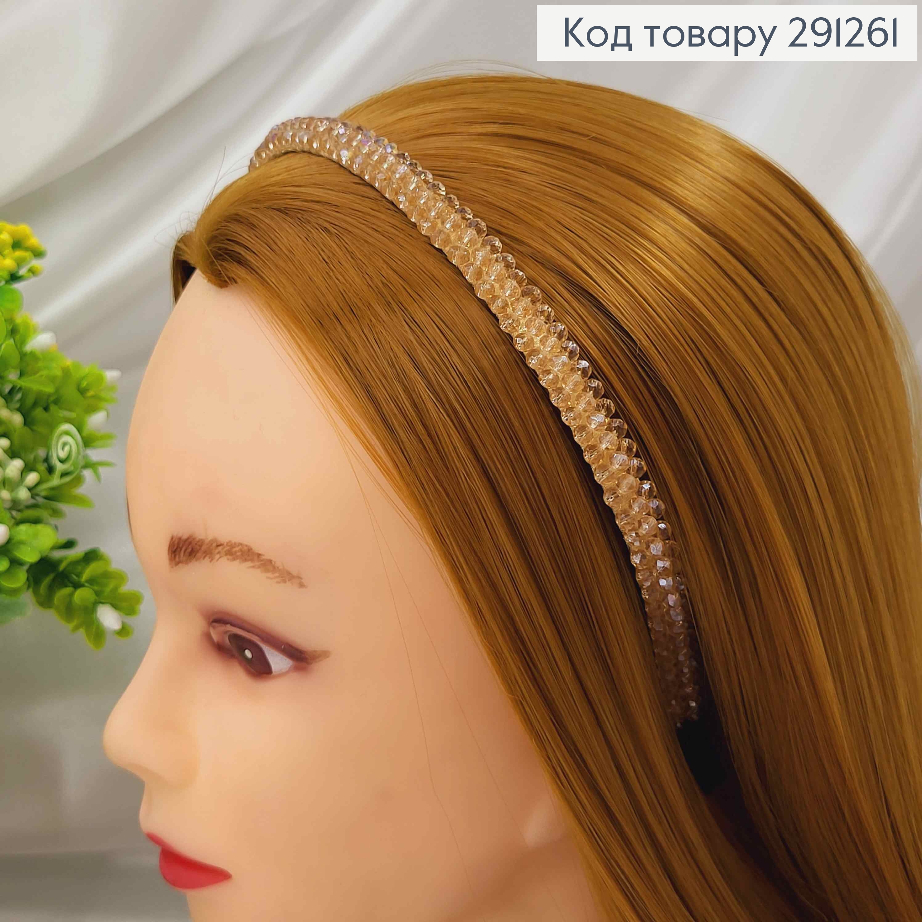 Обруч метал, плетений склярусом в 3 ряди, колір ШАМПАНЬ, шириною 1см.