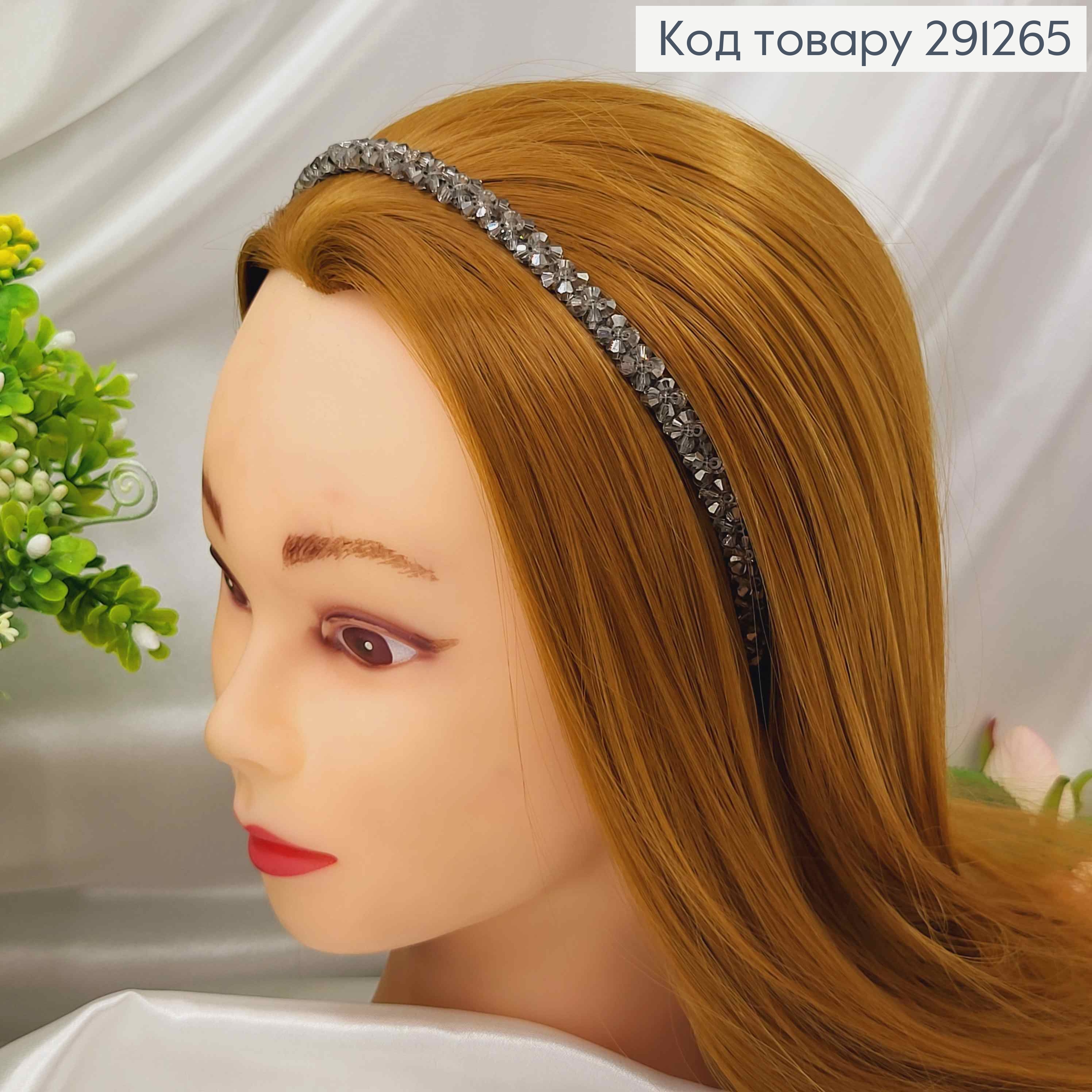 Обруч метал, ГРАФІТОВОГО кольору,  плетений Камінцями, ширина 1,5см 292404 фото