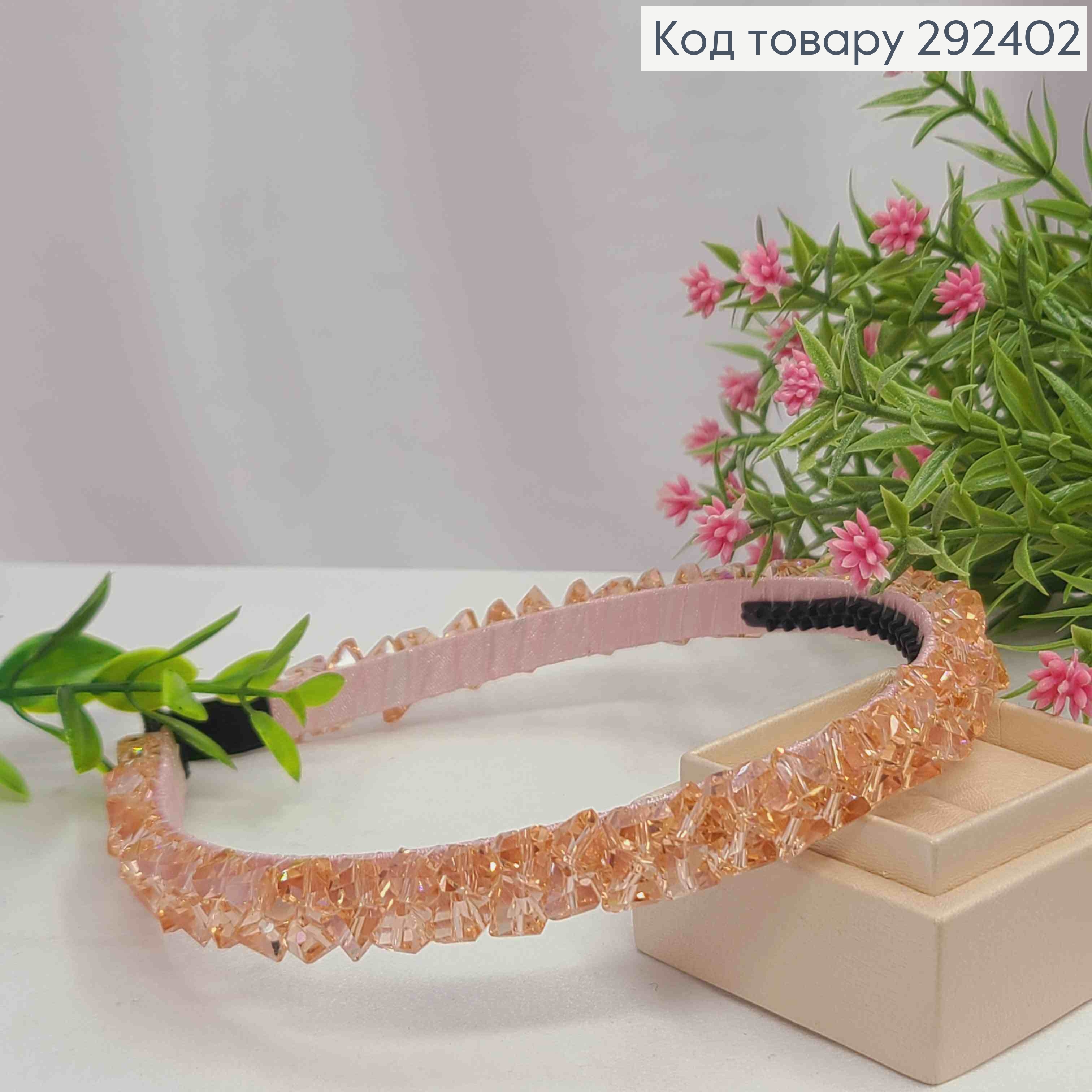 Обруч пластик, ПУДРОВОГО кольору,  плетений Стеклярусом та Бісером, ширина 1,5см 292414 фото