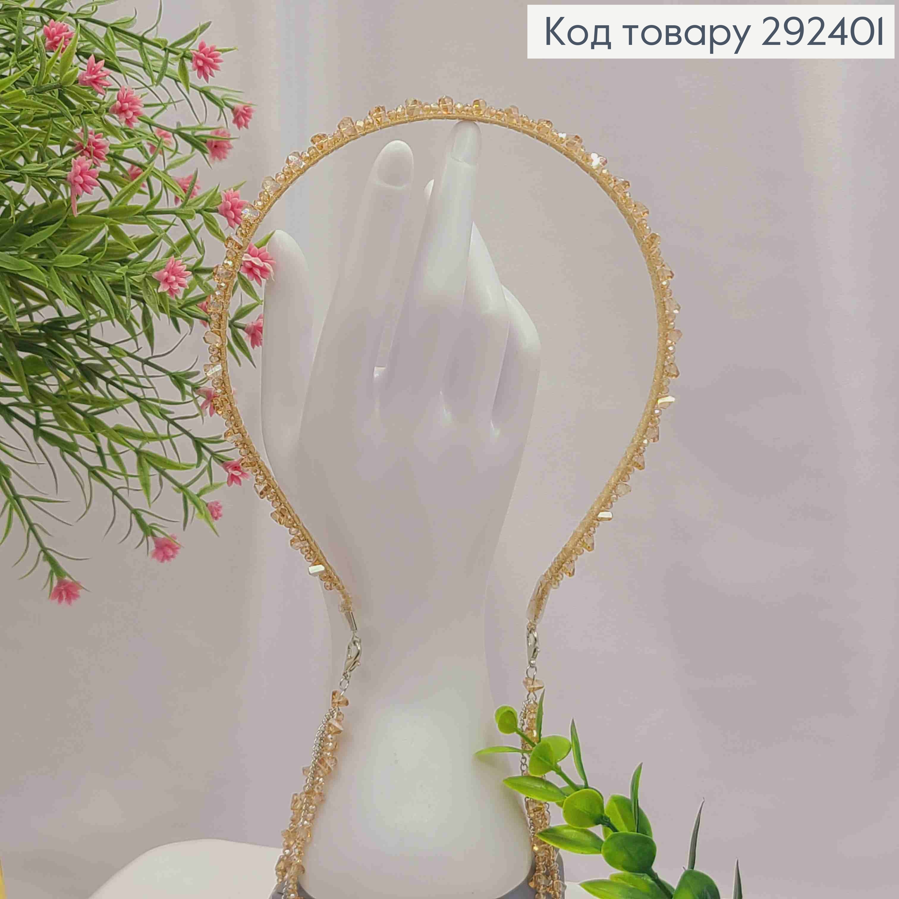 Обруч метал, БІЛОГО кольору,  плетений Стеклярусом зі знімними ланцюжками (22см), ширина 0,5см 292398 фото