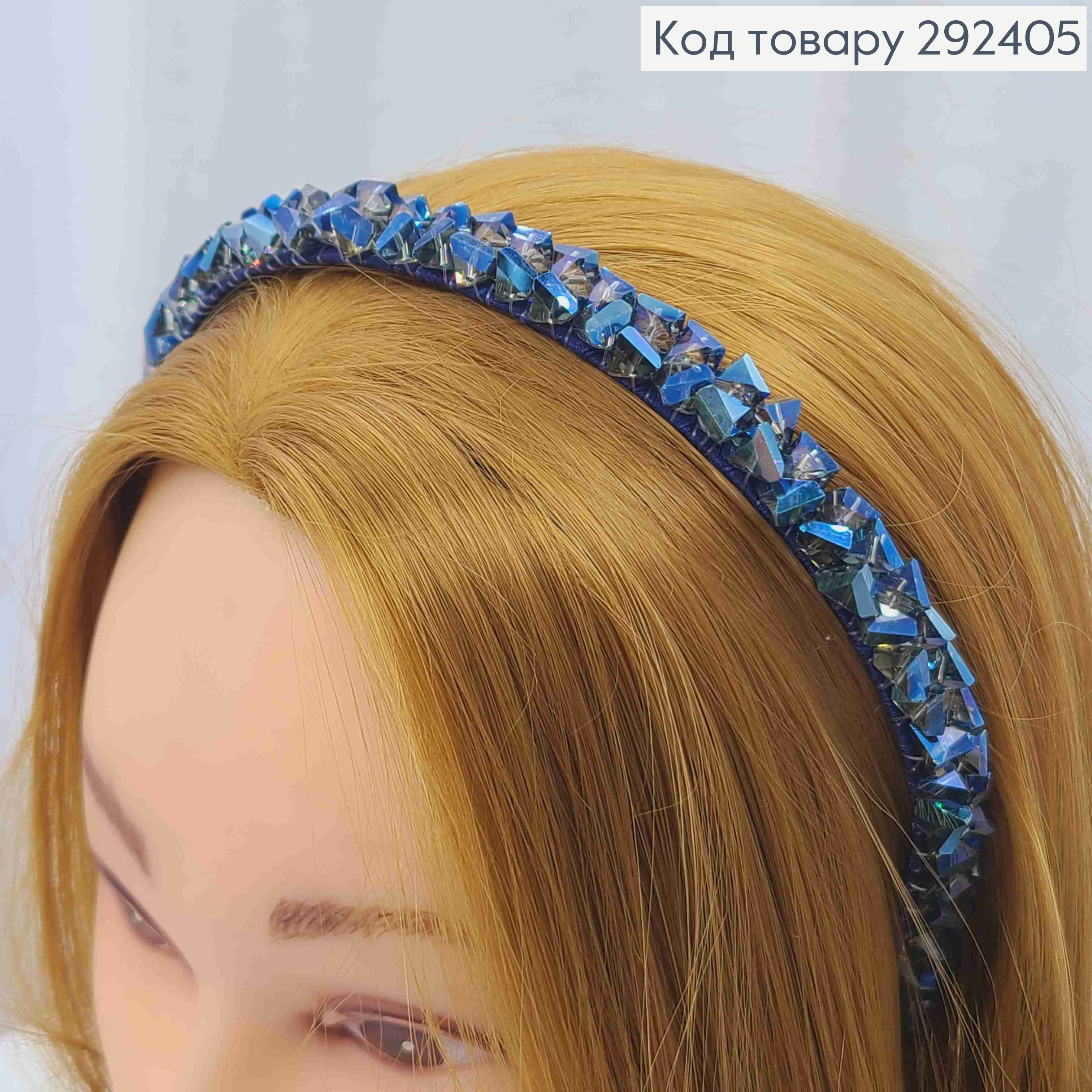 Обруч метал, СИНЬОГО кольору, плетений Камінцями, ширина 1,5см