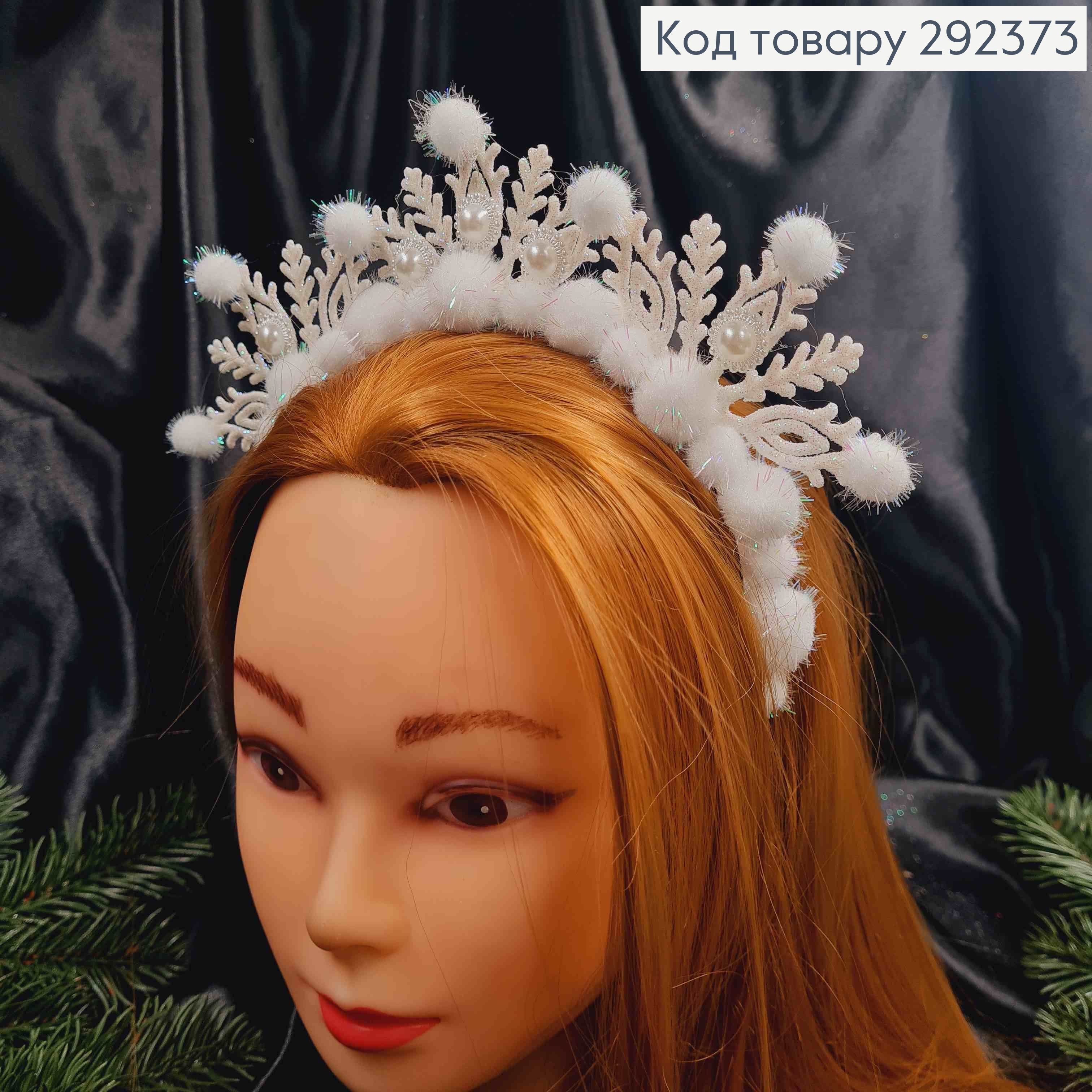 Обруч метал "П"ять сніжинок з помпончиками", висота сніжинки 5см, в асорт. ручна робота, Україна 691166 фото