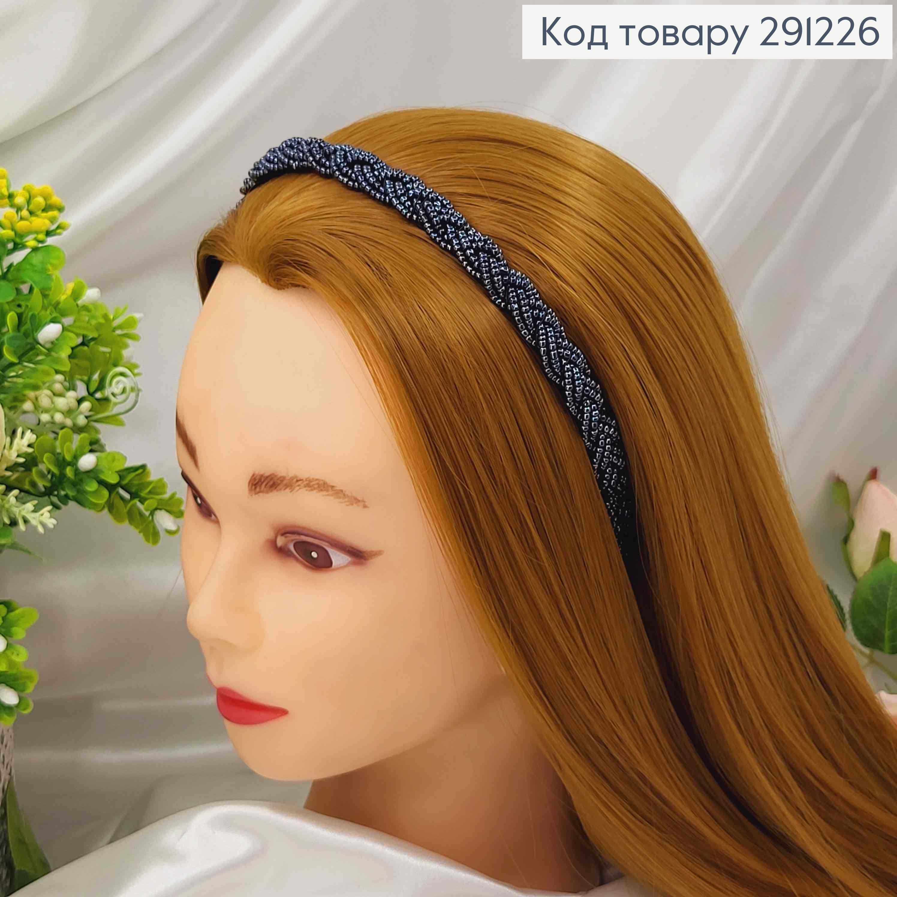 Обруч метал з плетеним бісером "Косичка" СИНІЙ, ширина 1,2см