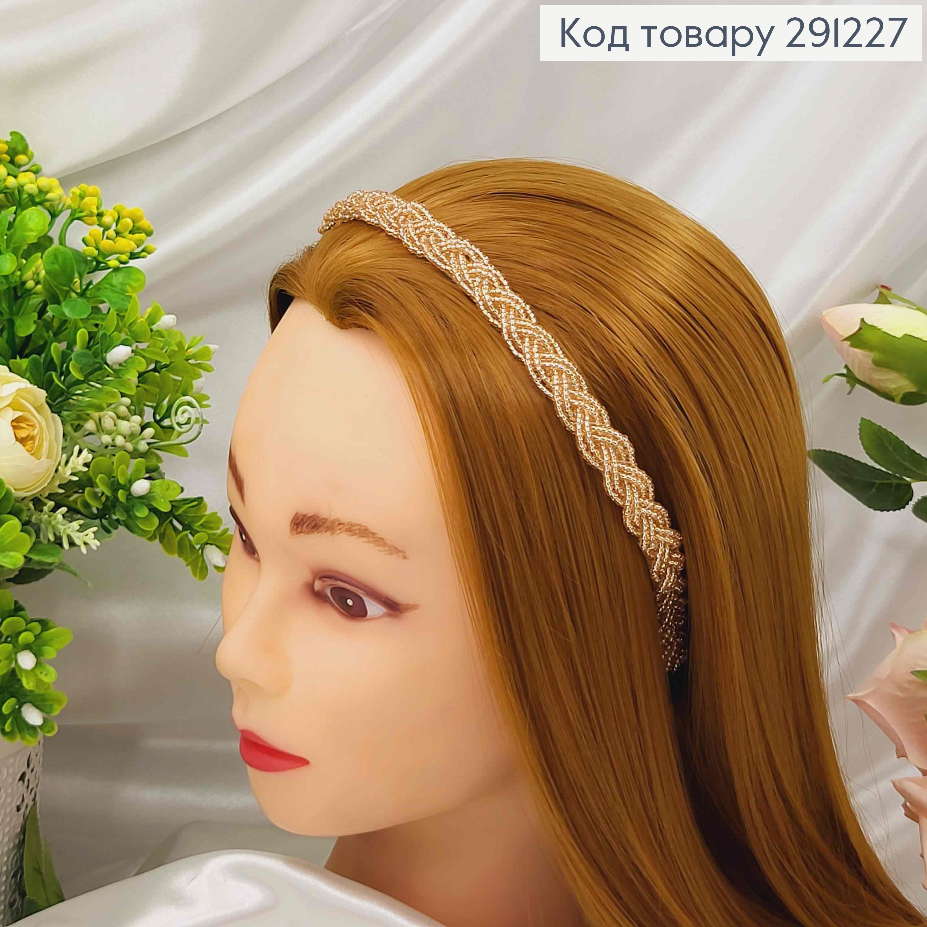 Обруч метал з плетеним бісером "Косичка" ШАМПАНЬ, ширина 1,2см