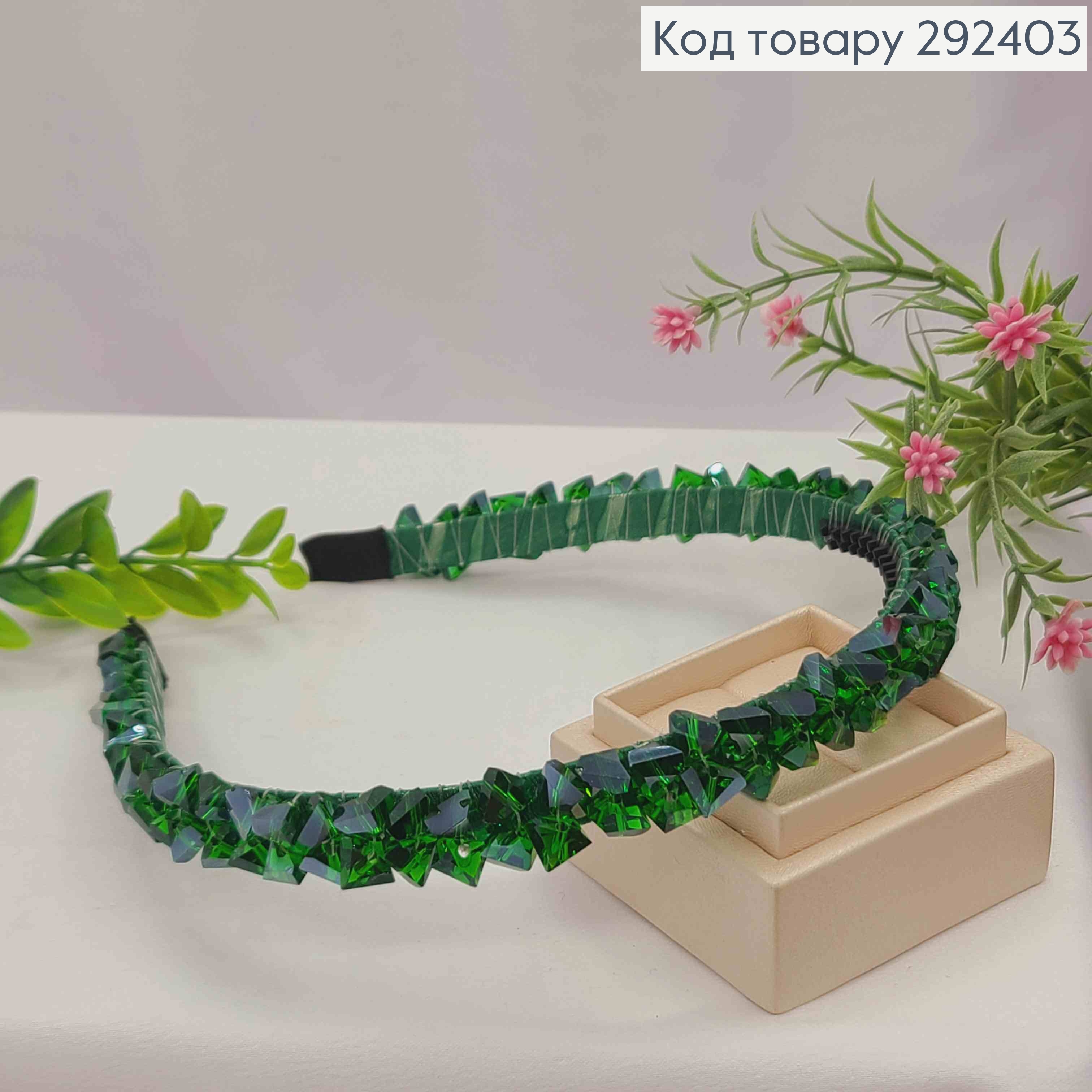 Обруч метал, ЗЕЛЕНОГО кольору, плетений Камінцями, ширина 1,5см