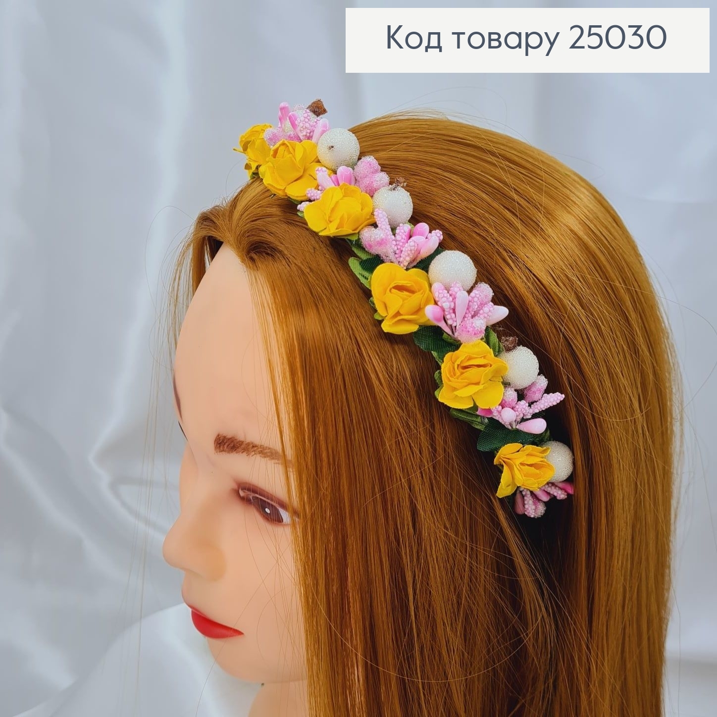 Обруч-віночок, плетений,  Троянди з Калиною, КРЕМОВОГО кольору, ручна робота, Україна 287045 фото