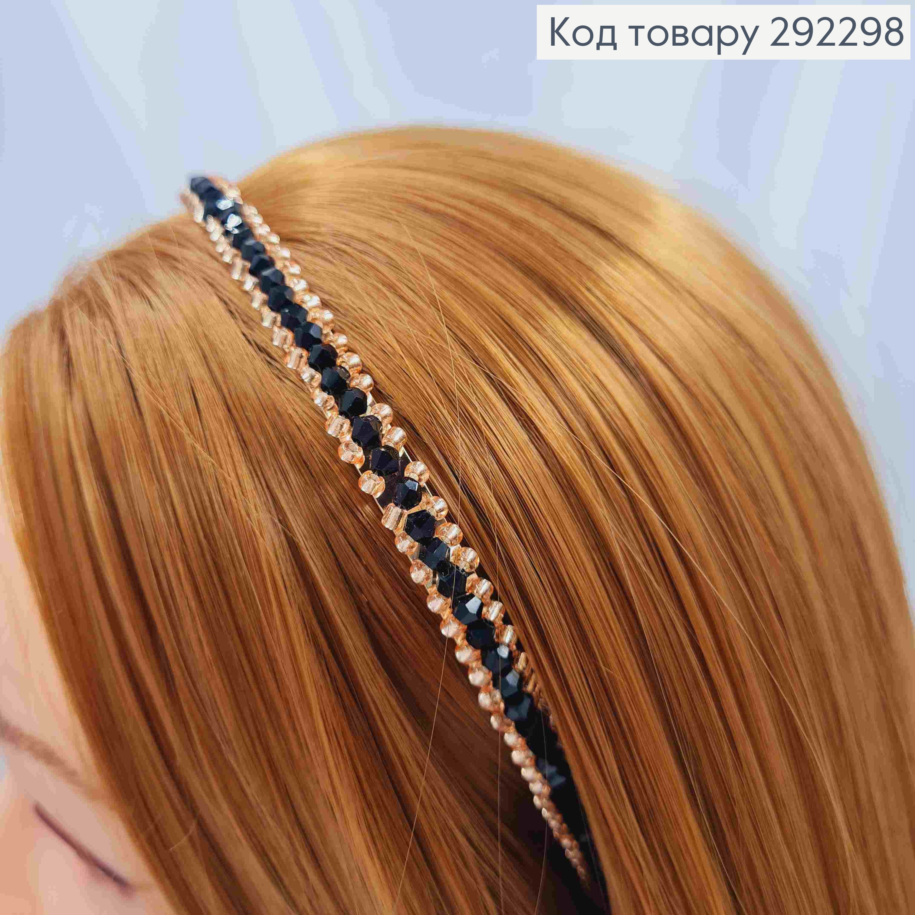 Обруч метал, ГРАФІТОВОГО кольору,  плетений Камінцями, ширина 1,5см 292404 фото