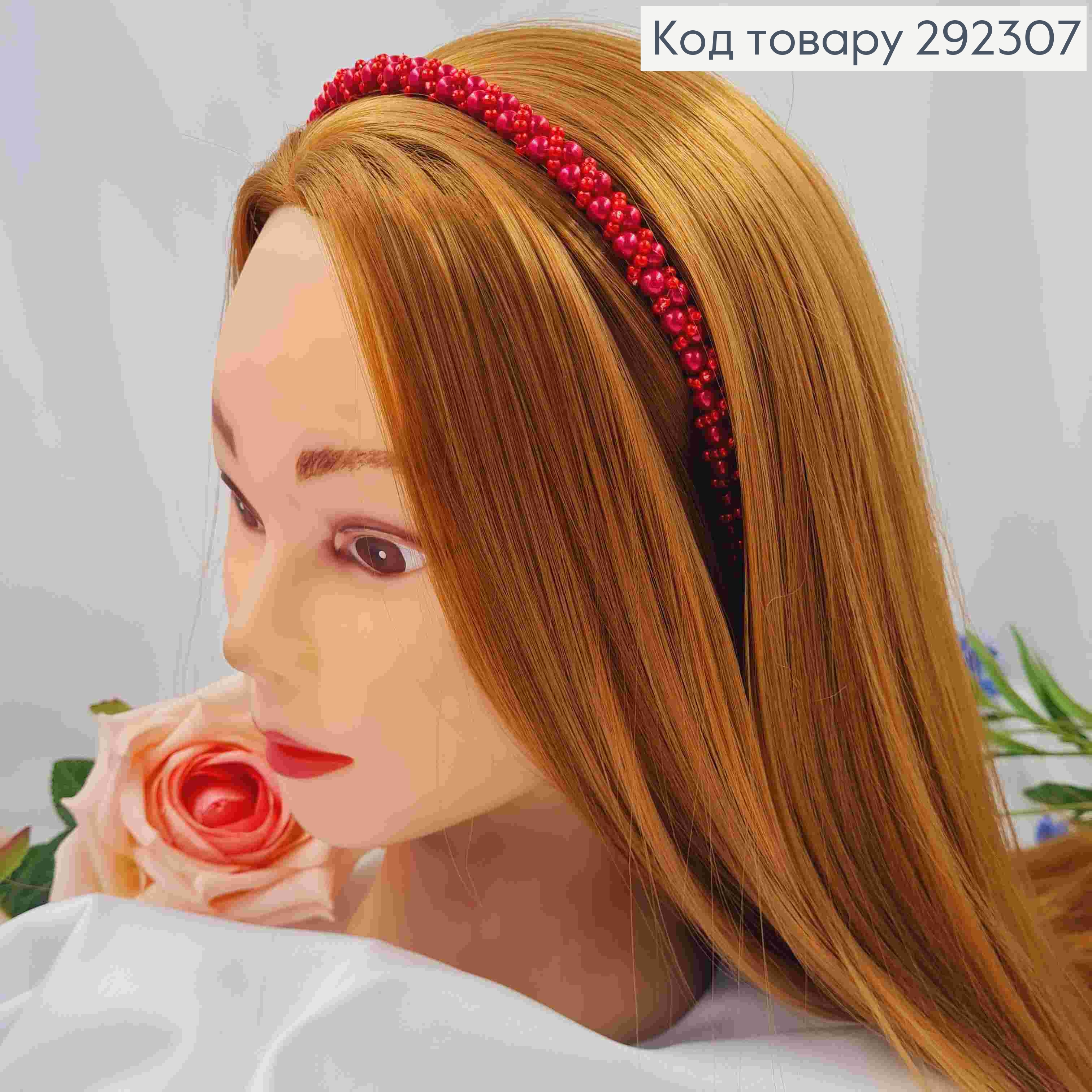 Обруч металевий з Перлинками різного розміру, Червоного кольору, 9мм