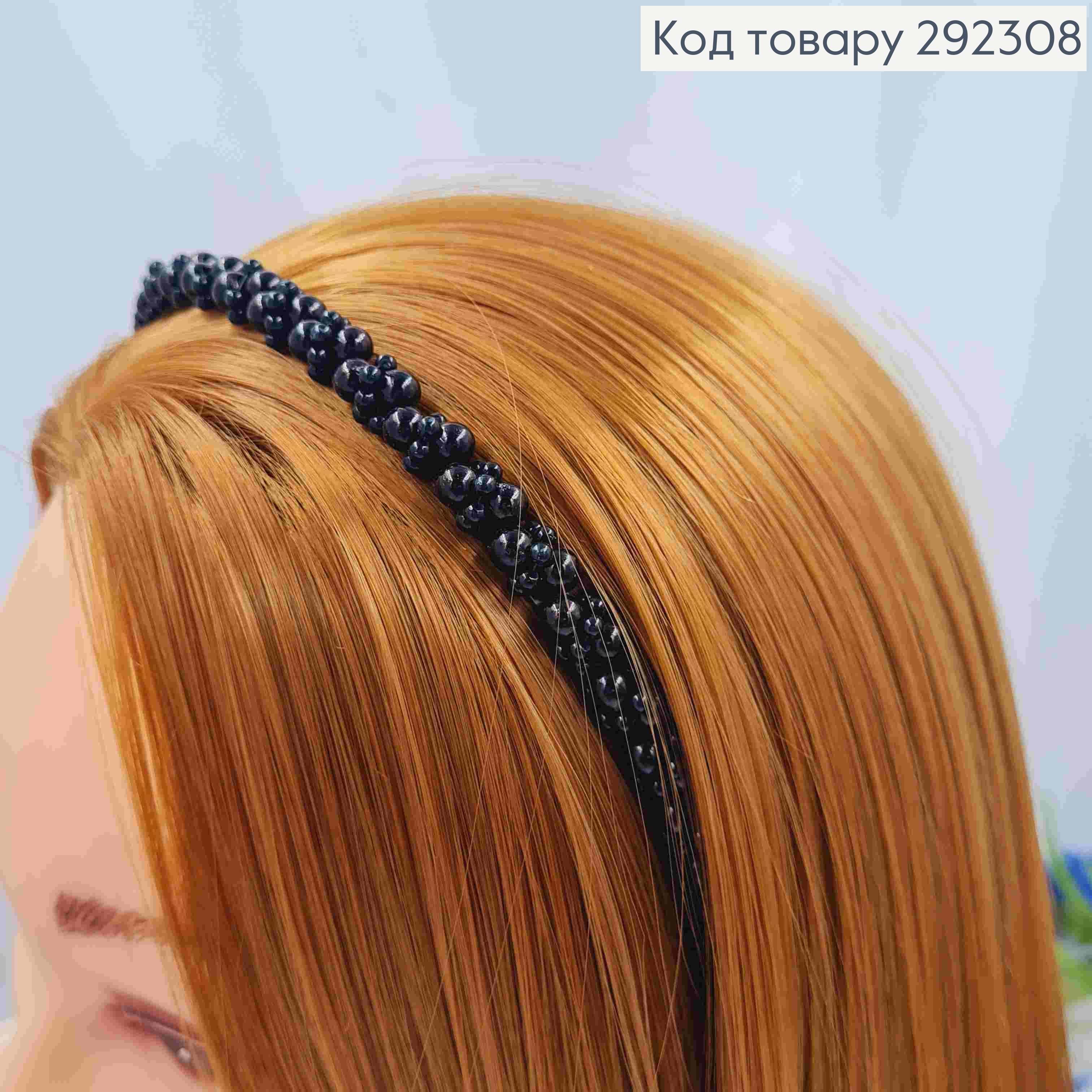 Обруч металевий з Перлинками різного розміру, Чорного кольору, 9мм