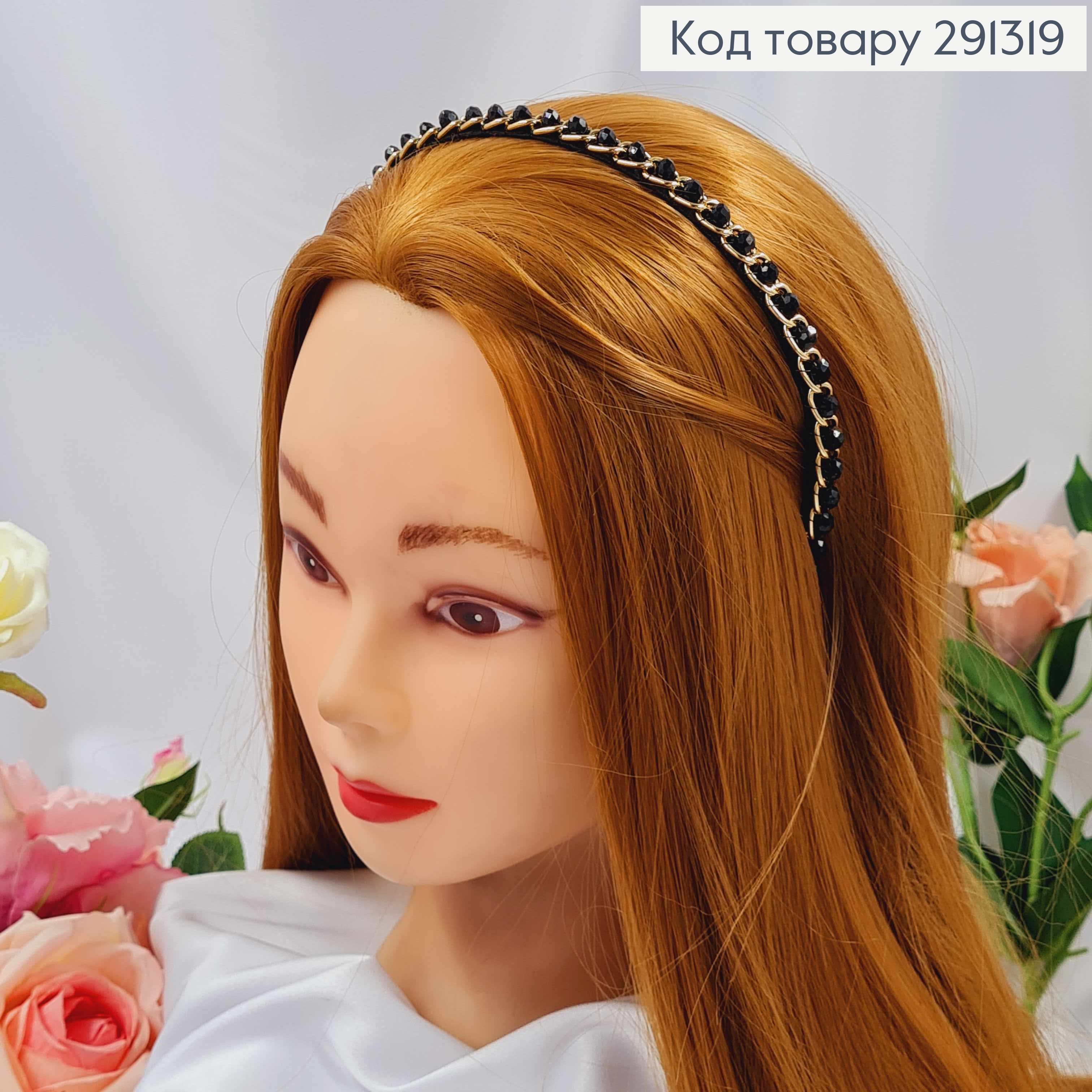 Обруч метал, ГРАФІТОВОГО кольору,  плетений Камінцями, ширина 1,5см 292404 фото