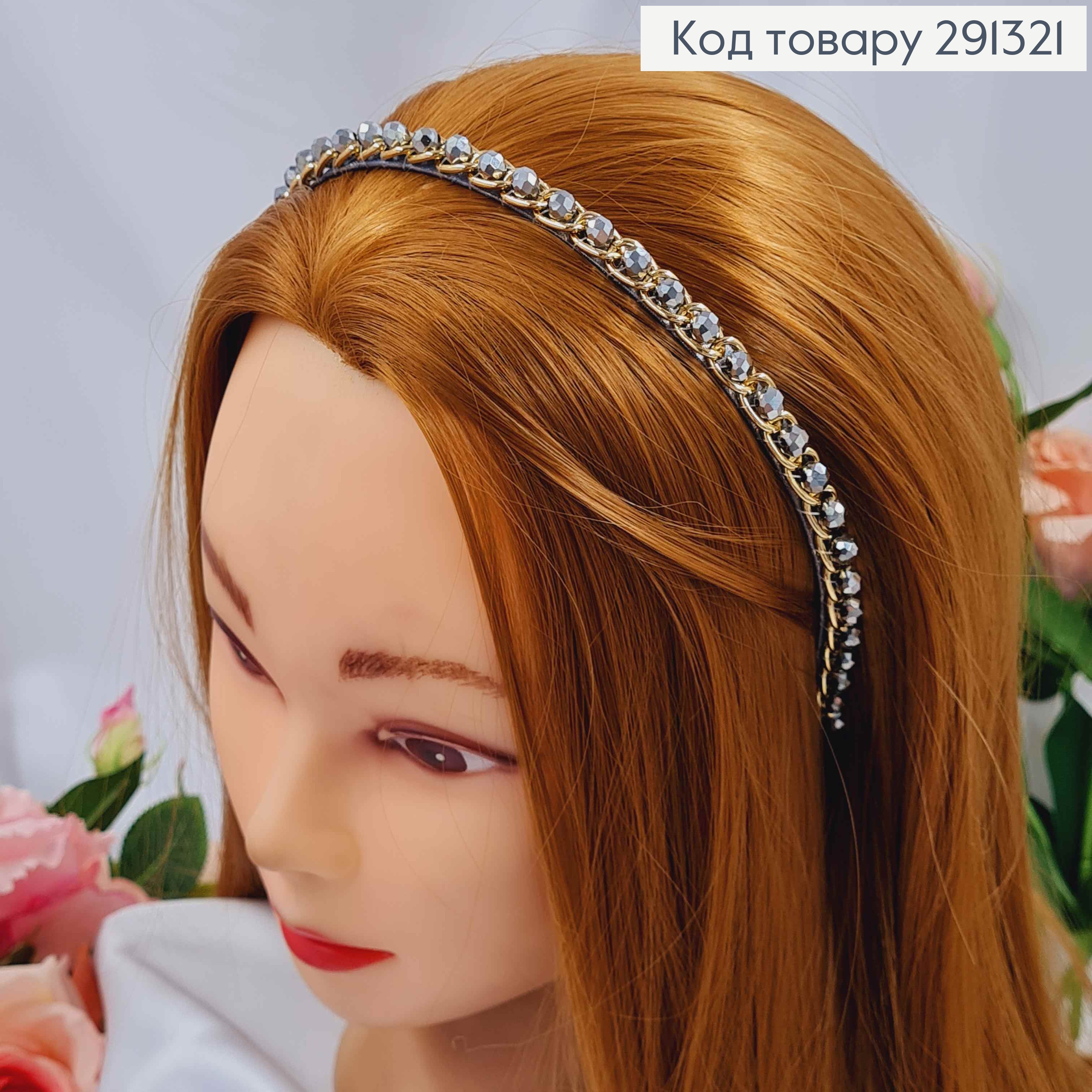 Обруч метал, ГРАФІТОВОГО кольору,  плетений Камінцями, ширина 1,5см 292404 фото