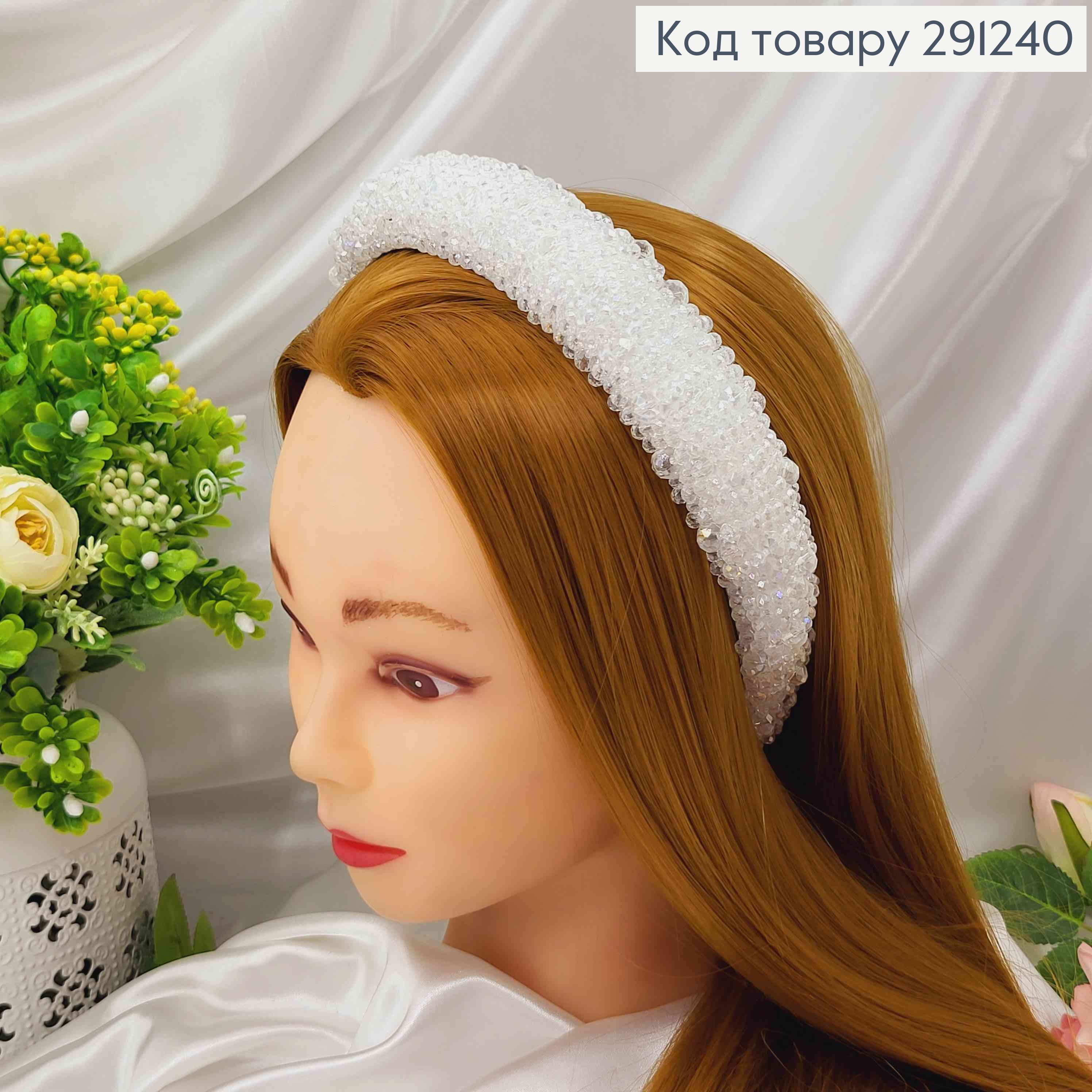 Обруч модний плетений стіклярусом, кольору ПЕРЛАМУТР ПРОЗОРИЙ, ширина 3,5см