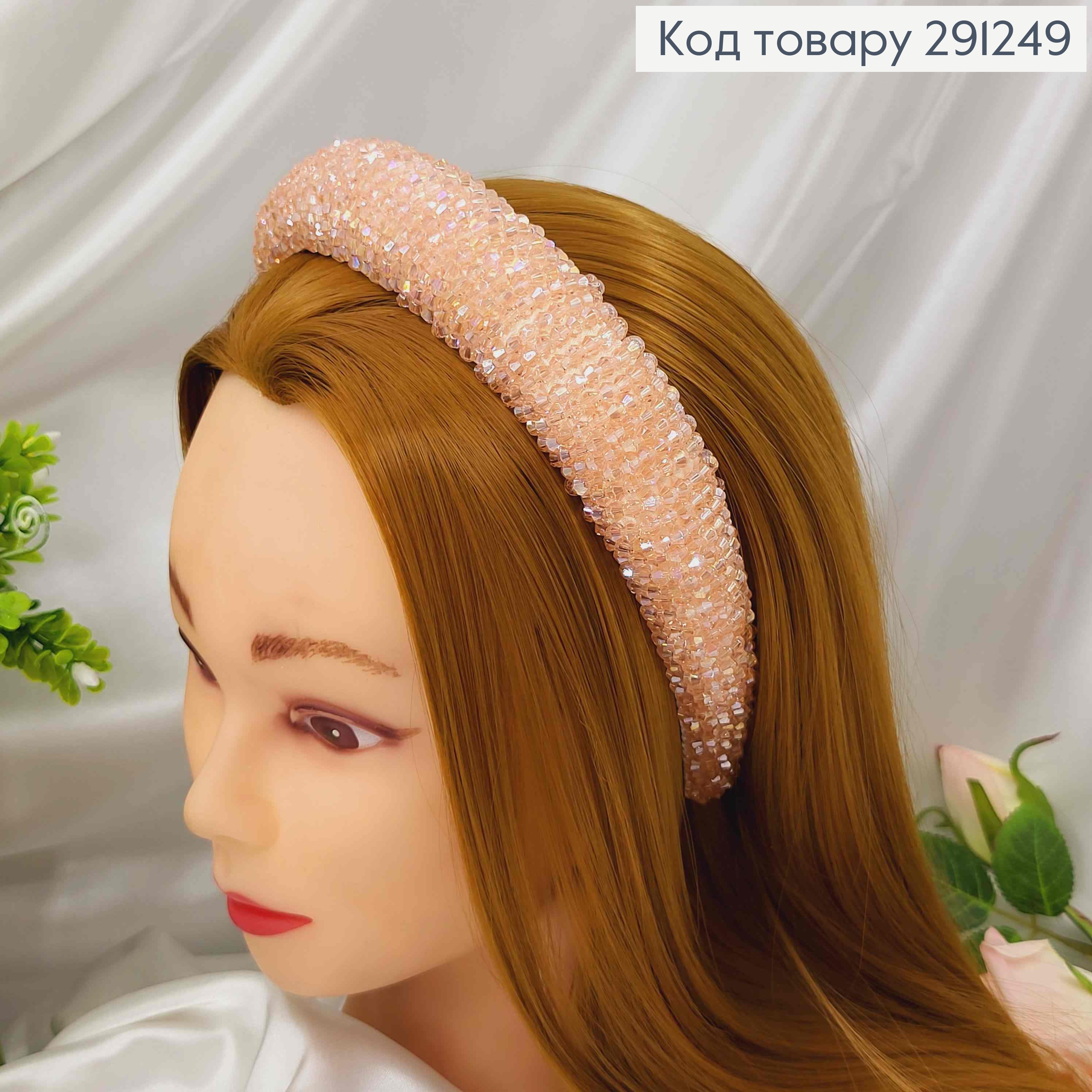 Обруч пластик, ПУДРОВОГО кольору,  плетений Стеклярусом та Бісером, ширина 1,5см 292414 фото