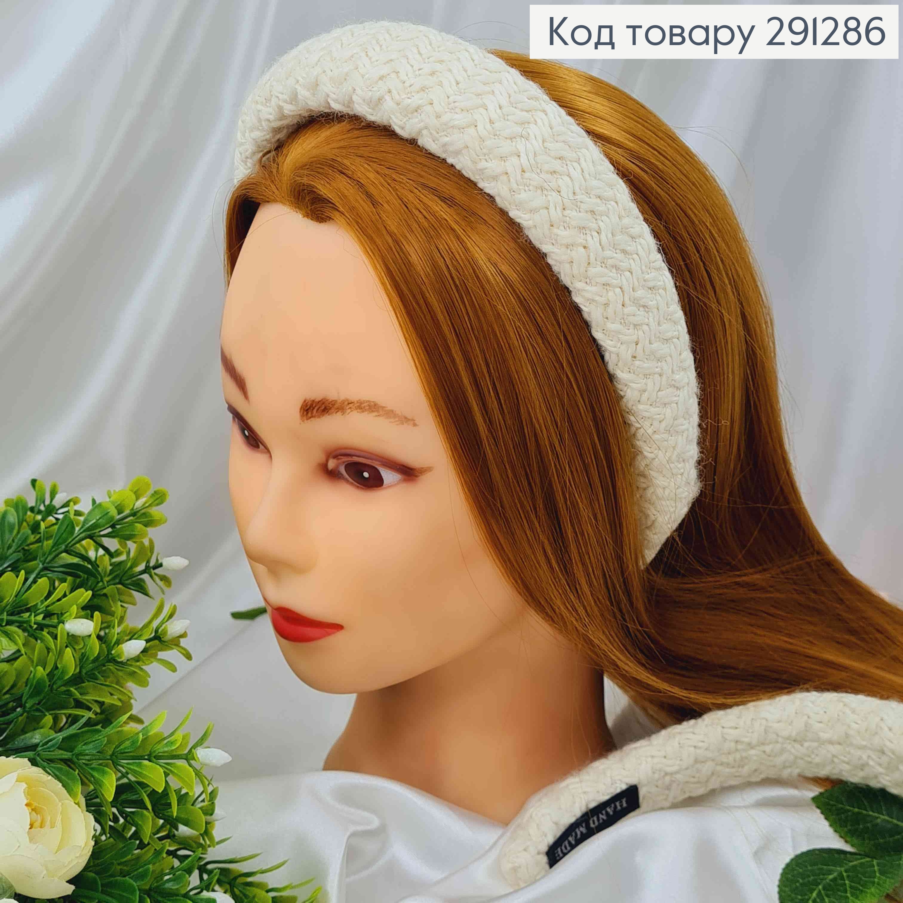 Обруч пластик, об'ємний в тканині, м'який, з люрексом кольору Айворі, 4см, ручна робота, Україна 292432 фото
