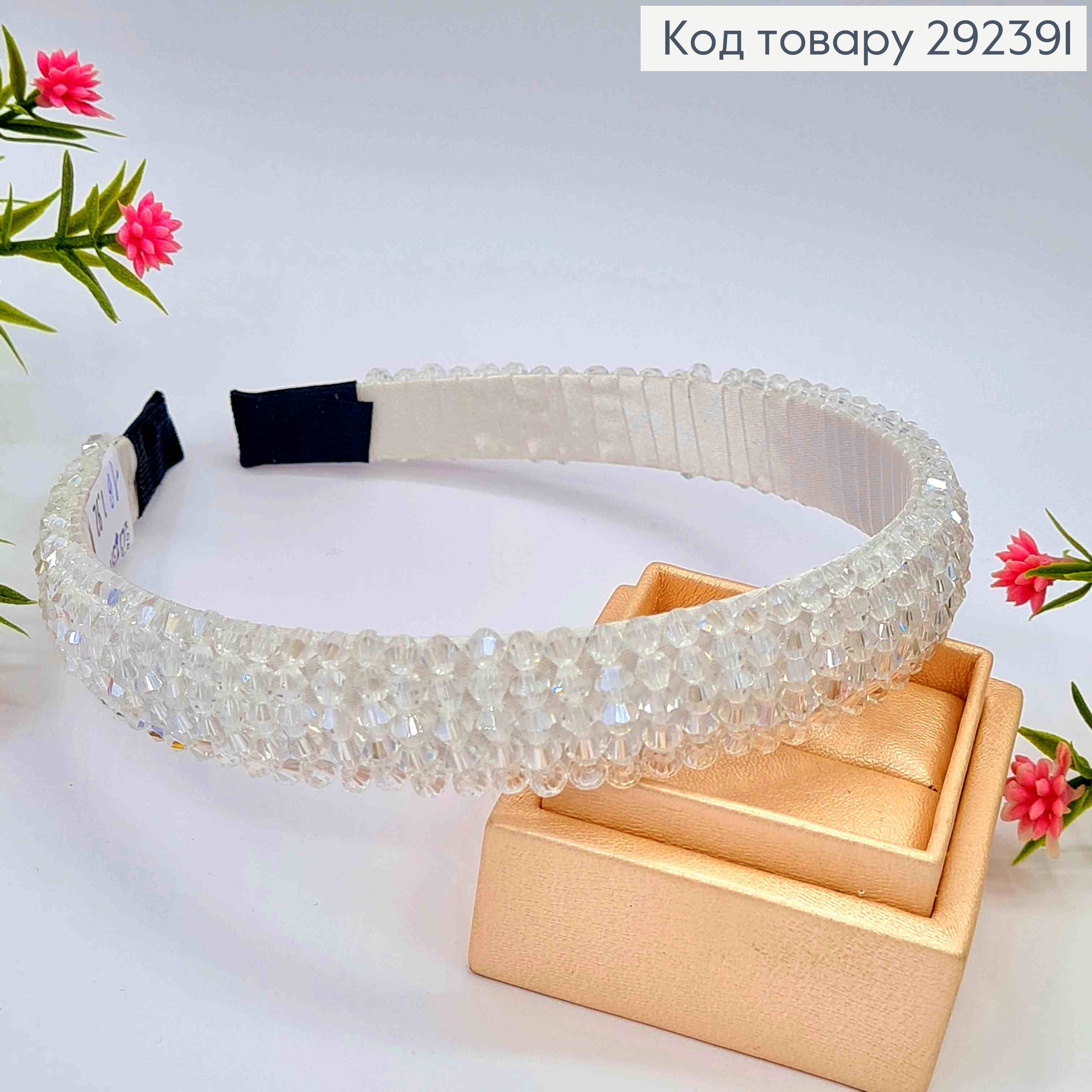 Обруч пластик, БІЛОГО кольору, плетений Стеклярусом, ширина 2см