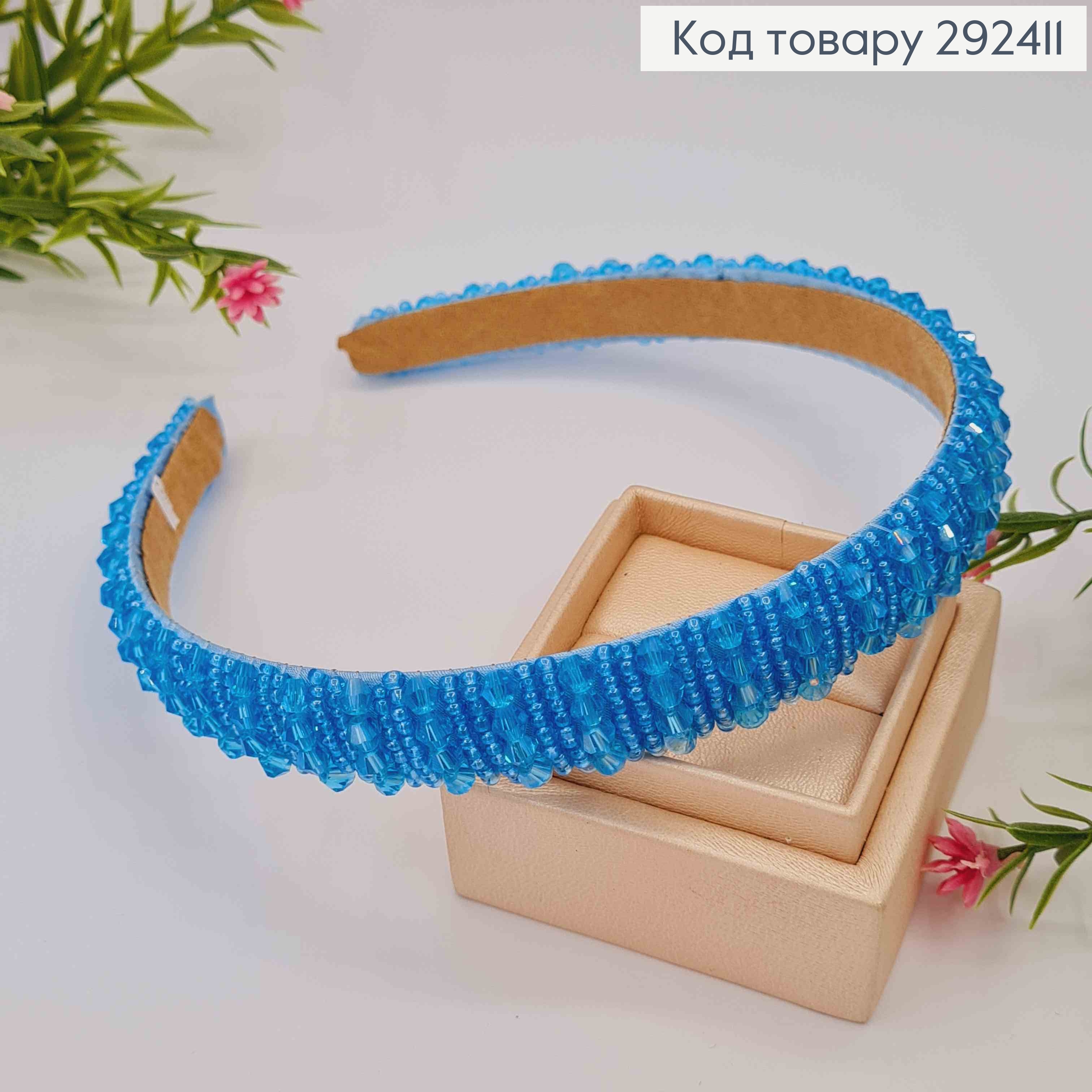 Обруч пластик, БЛАКИТНОГО кольору, плетений Стеклярусом та Бісером, ширина 1,5см