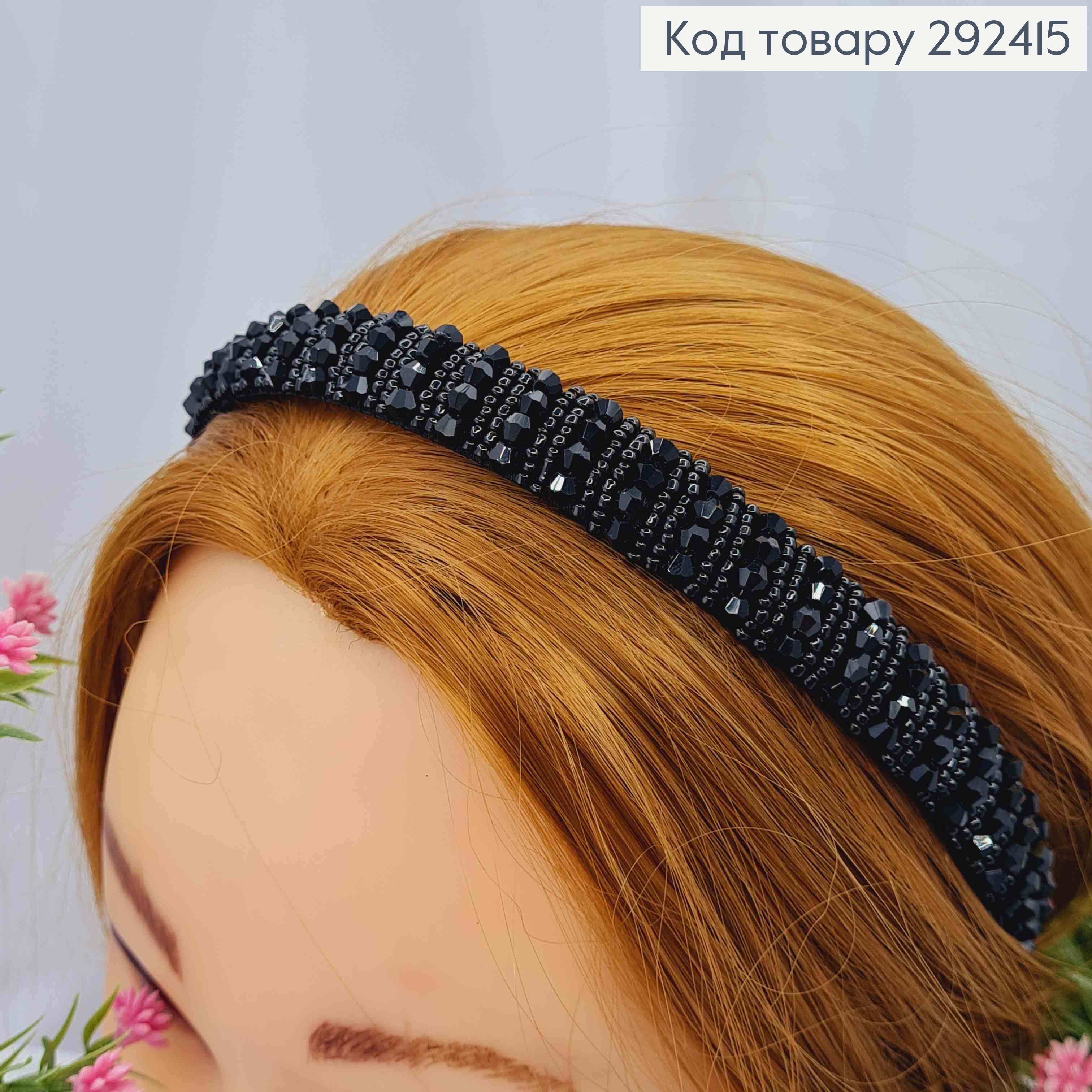 Обруч пластик, ЧОРНОГО кольору, плетений Стеклярусом та Бісером, ширина 1,5см