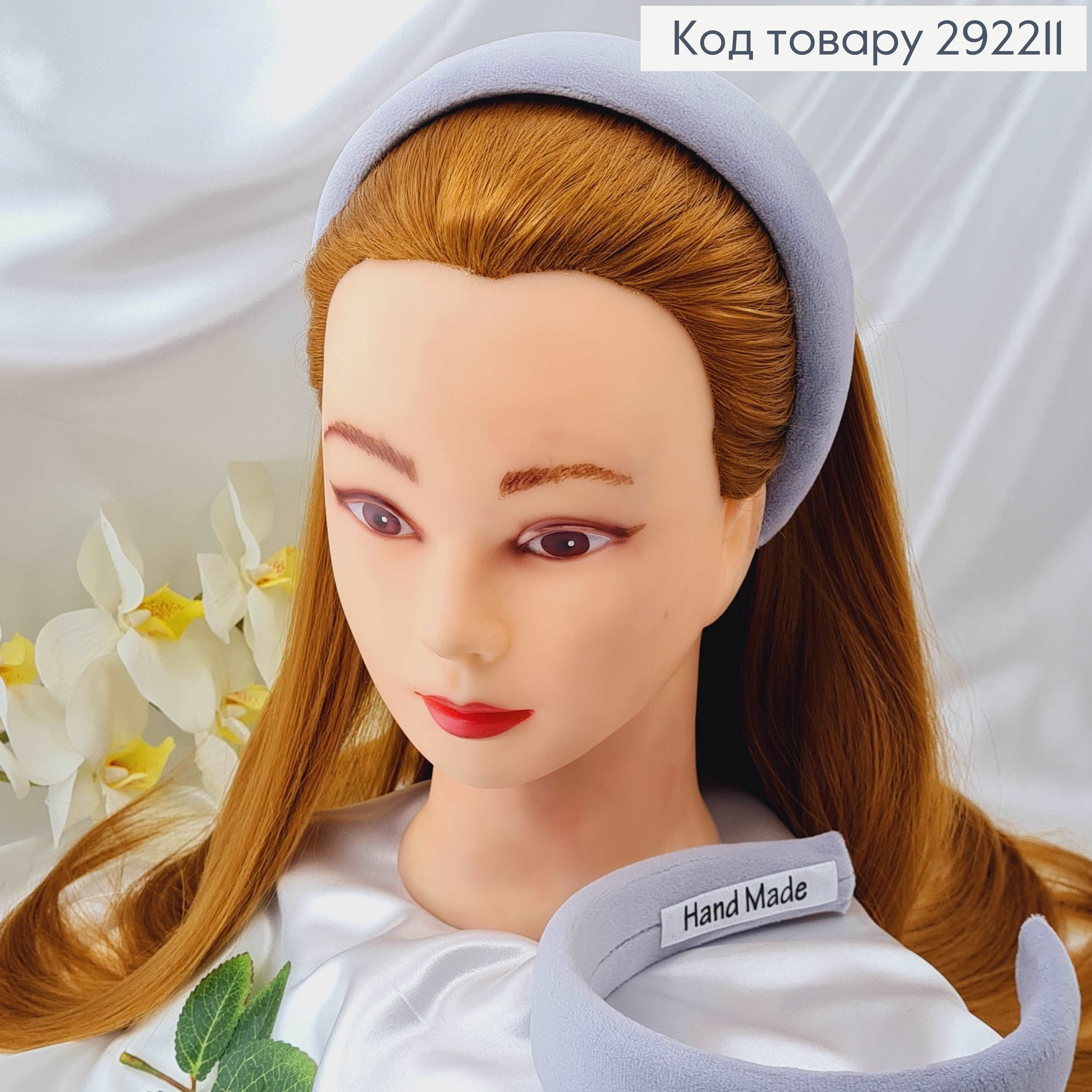 Обруч пластик, об'ємний в тканині, м'який, з люрексом Синього кольору, 4см, ручна робота, Україна 292430 фото