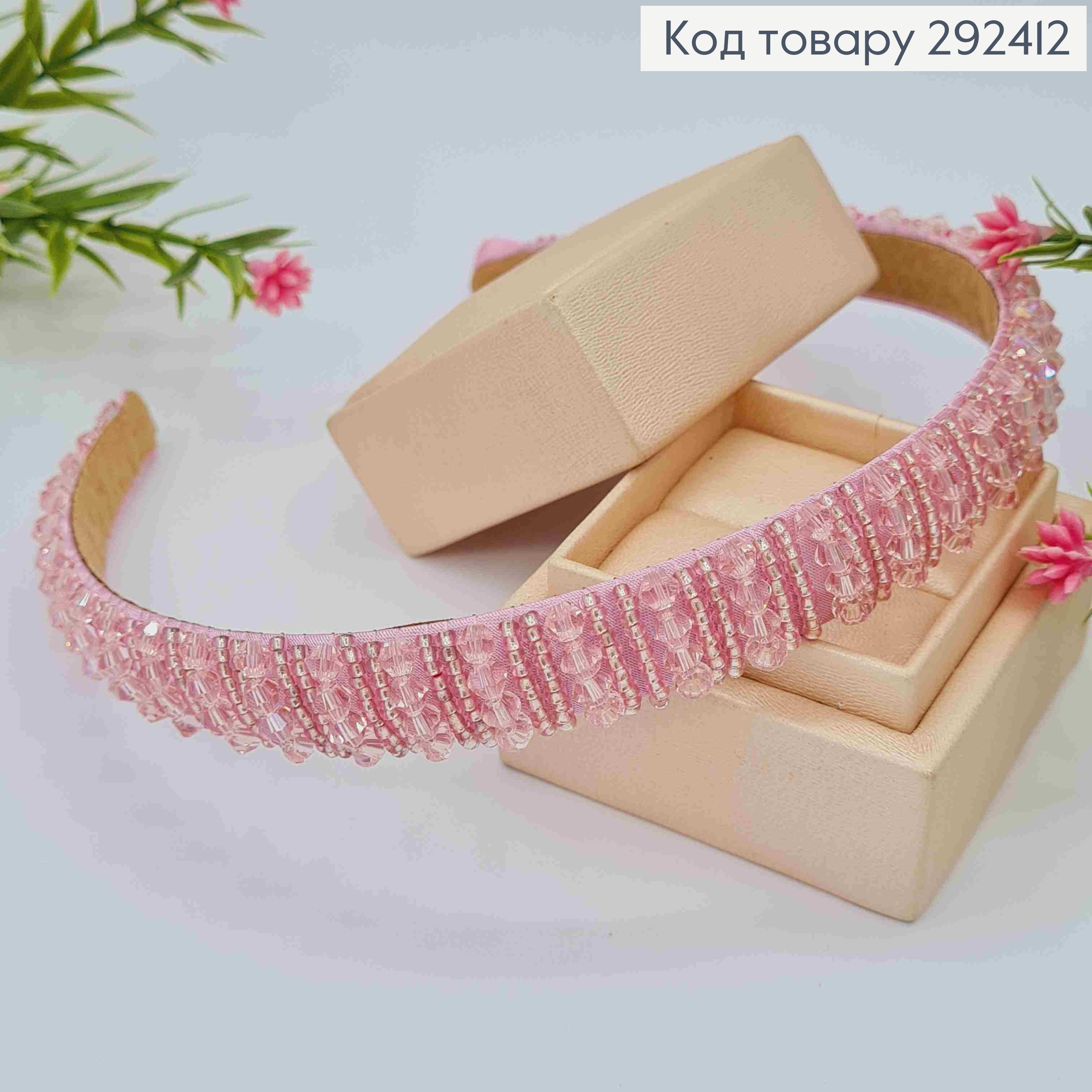 Обруч пластик, РОЖЕВОГО кольору,  плетений Стеклярусом, ширина 2см 292387 фото