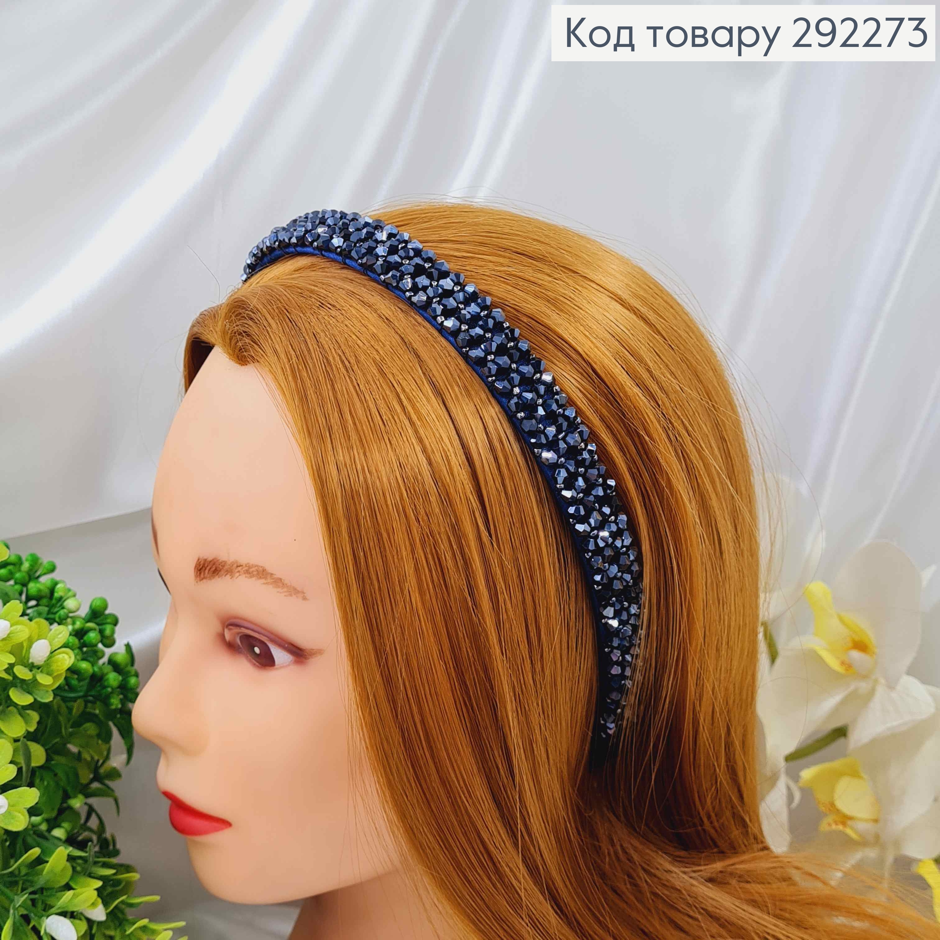 Обруч плетений блискучим стеклярусом, СИНІЙ колір, ширина 1,5 см