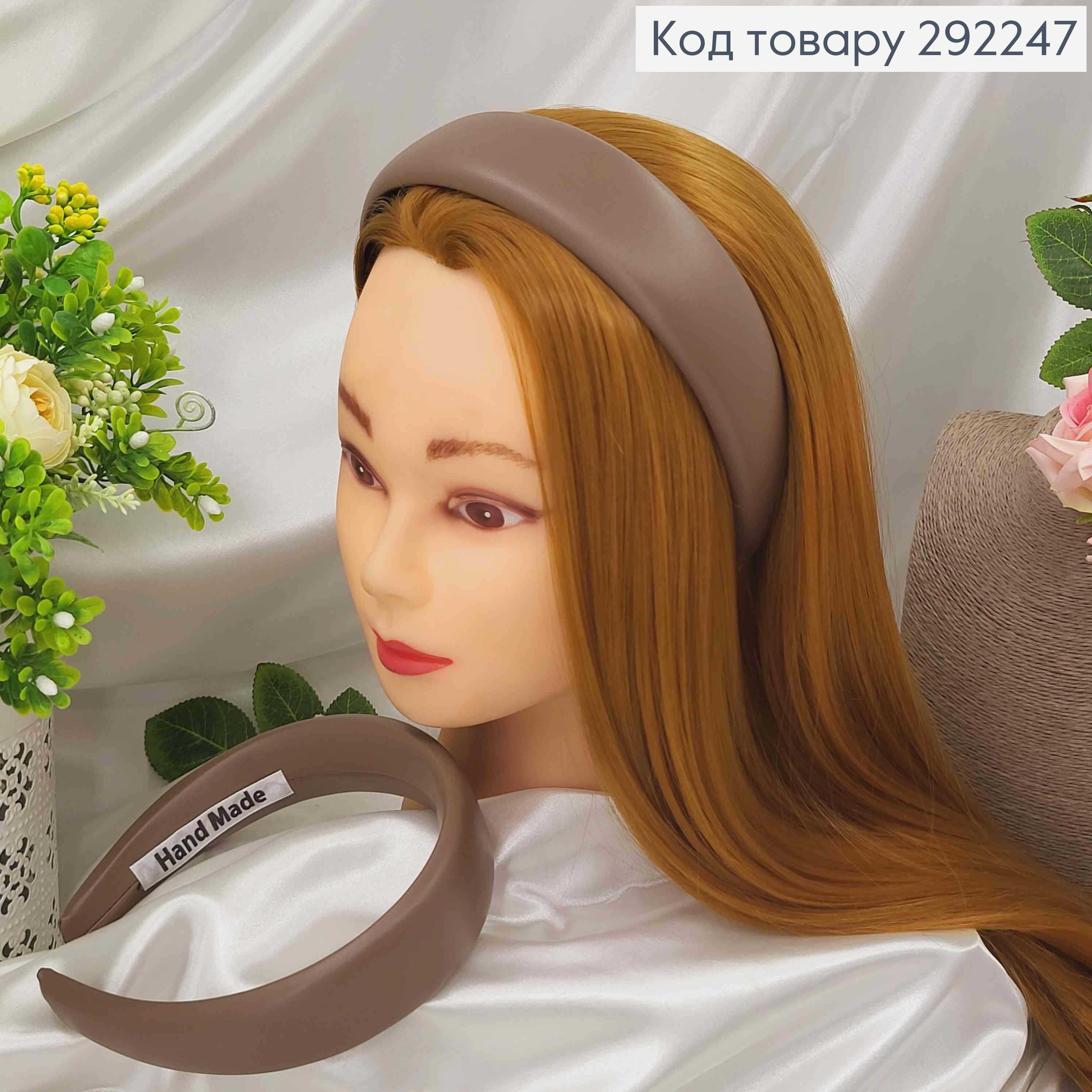 Обруч широкий 4,5см , ЕКОшкіра, колір КАКАО, ручна робота, Україна