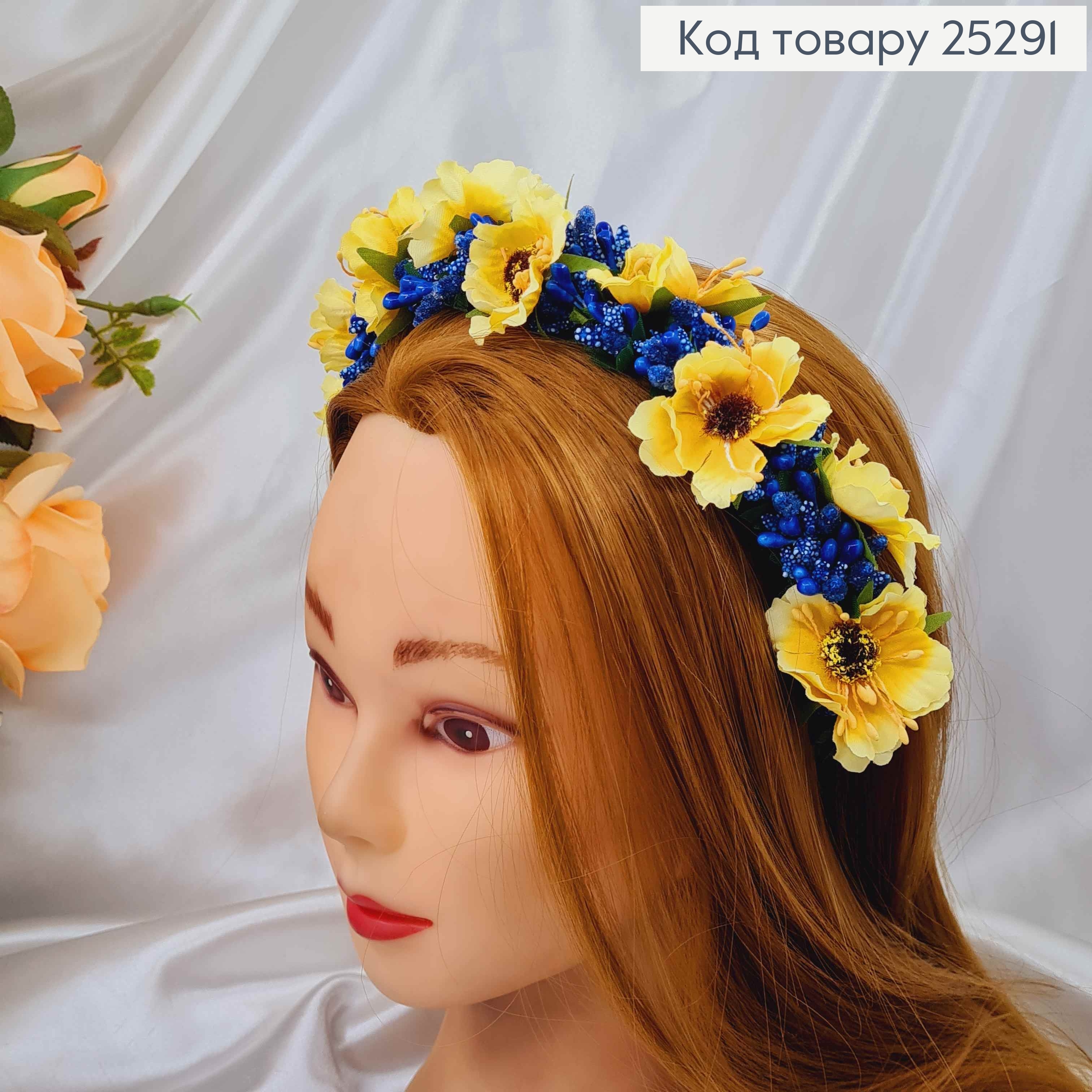 Обруч - віночок  маки ЖОВТОГО кольору з Блакитним додатком , основа - метал, ручна робота, Україна 287014-1 фото