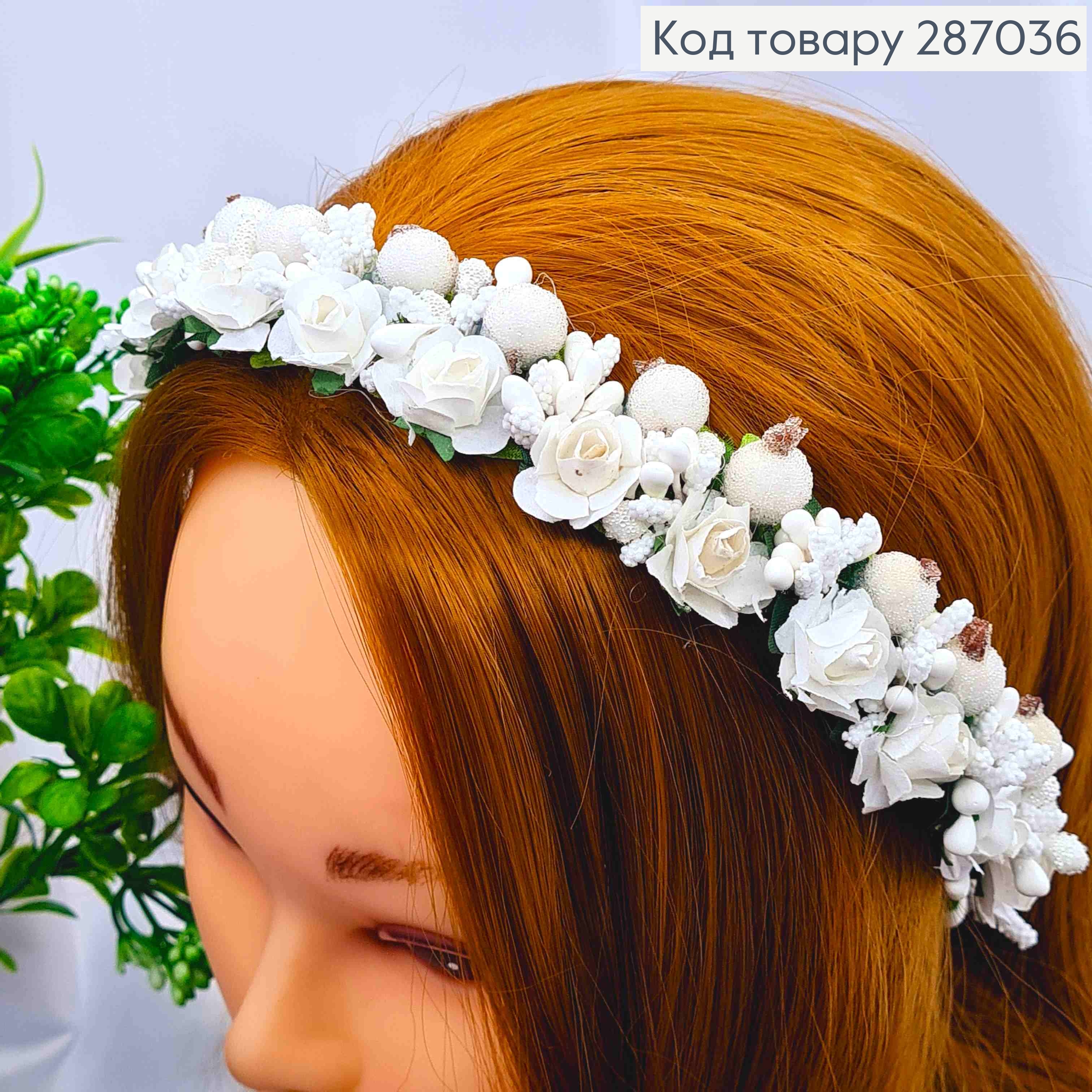 Обруч-віночок Троянда з Калиною, БІЛОГО кольору, ручна робота, Україна