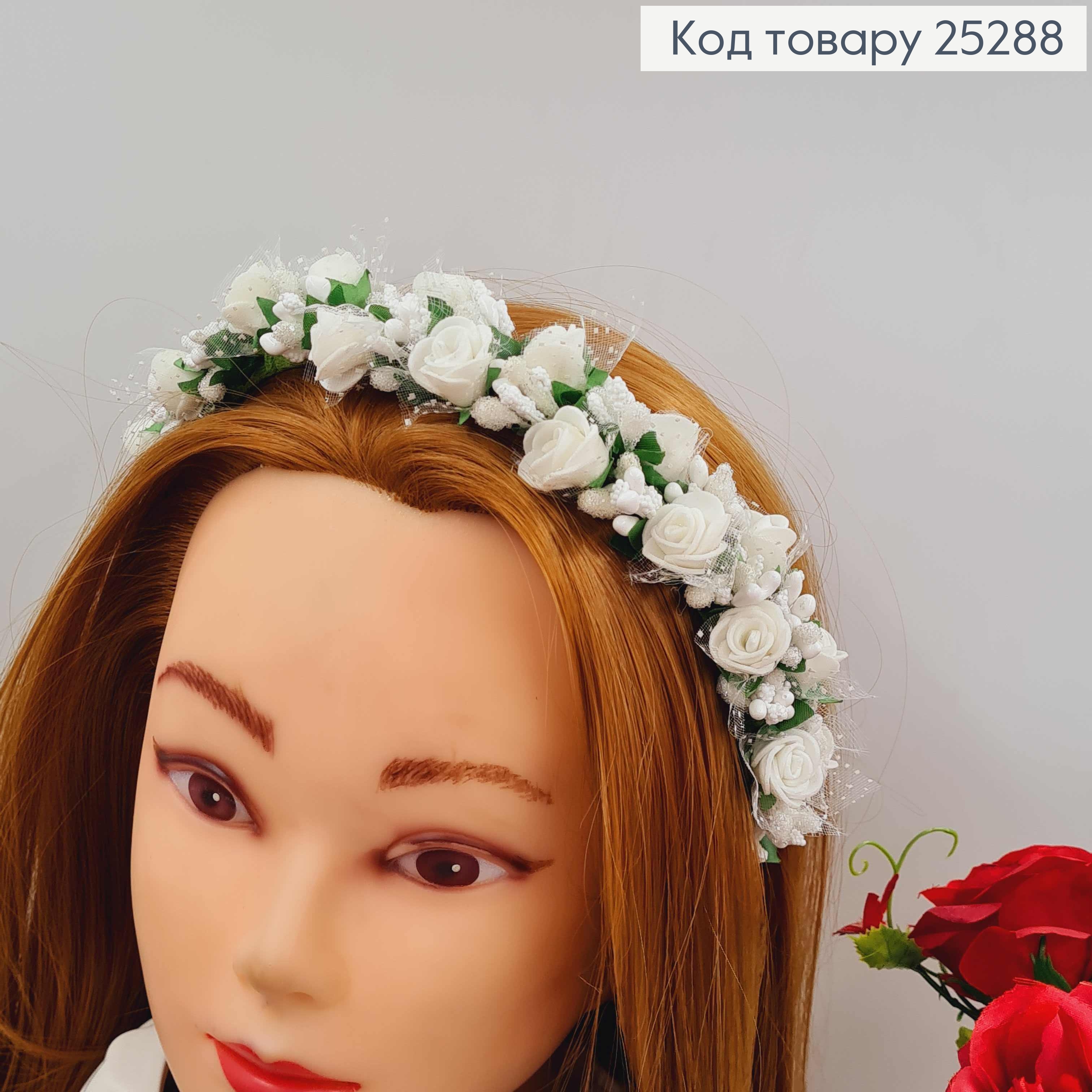 Обруч-віночок, плетений,  Троянди з Калиною, КРЕМОВОГО кольору, ручна робота, Україна 287045 фото