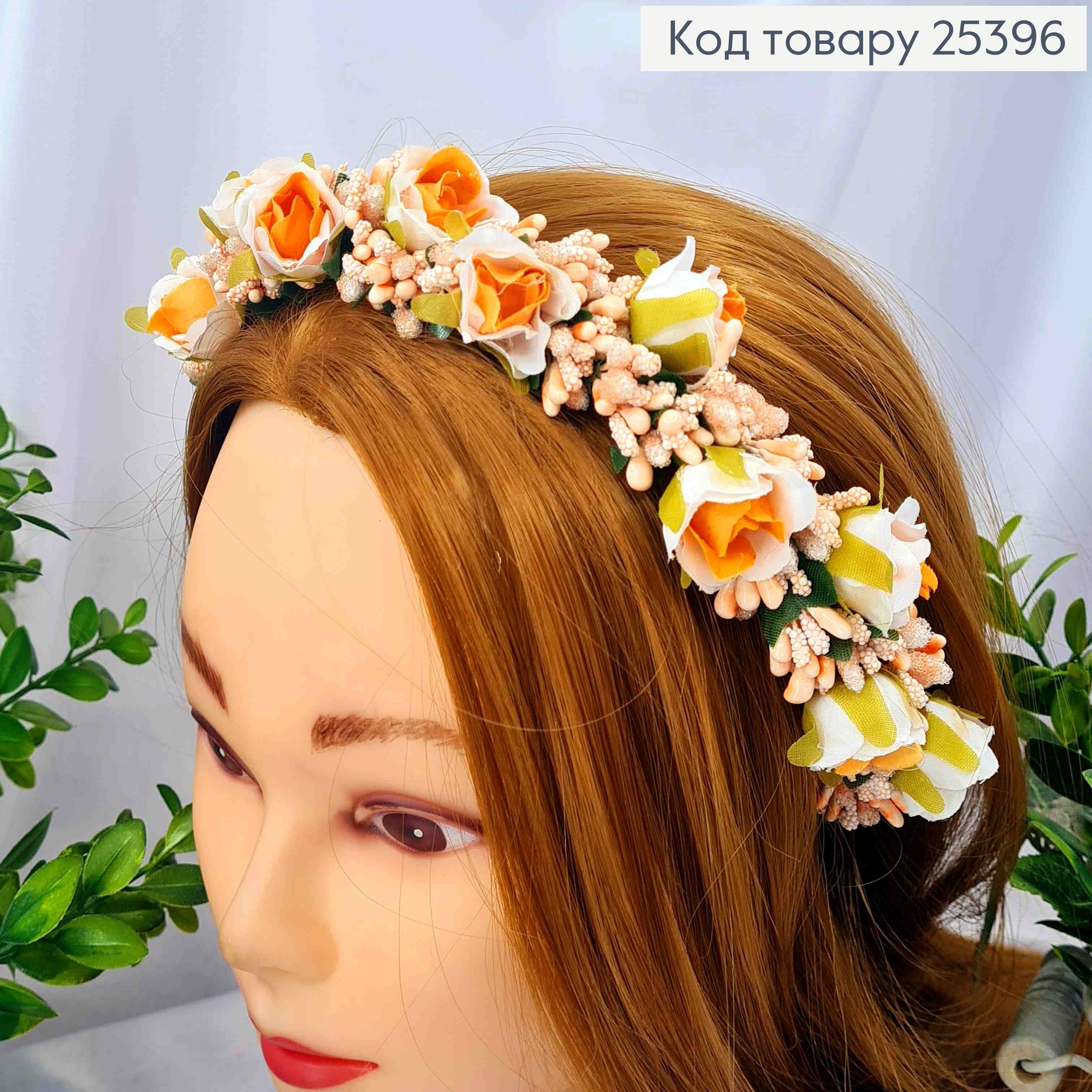 Обруч - вінок, метал, БІЛО-ПЕРСИКОВІ Троянди з Персиковим додатком, ручна робота, Україна