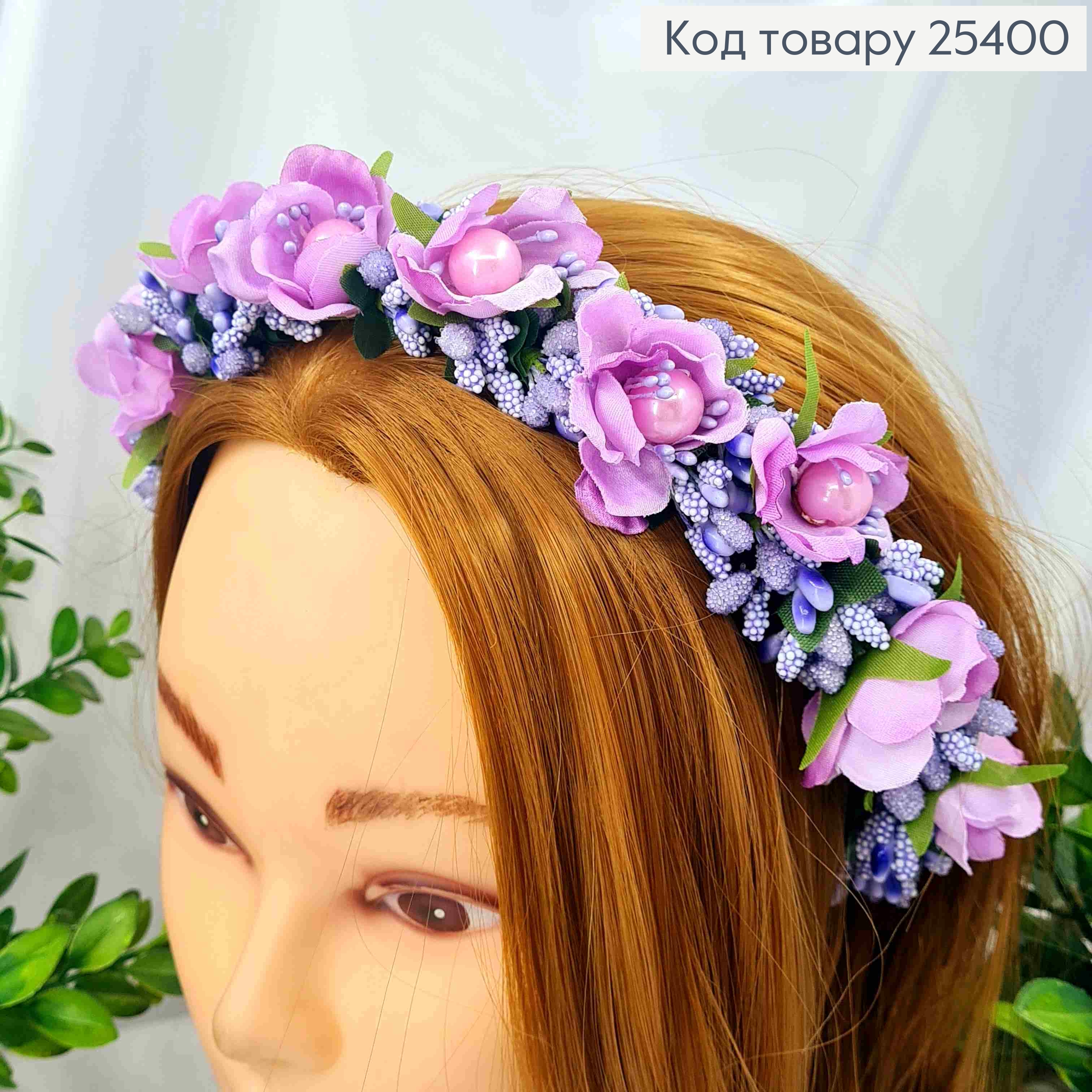 Обруч - вінок, метал, ФІОЛЕТОВІ Квіточки з Фіолетовим додатком, ручна робота, Україна