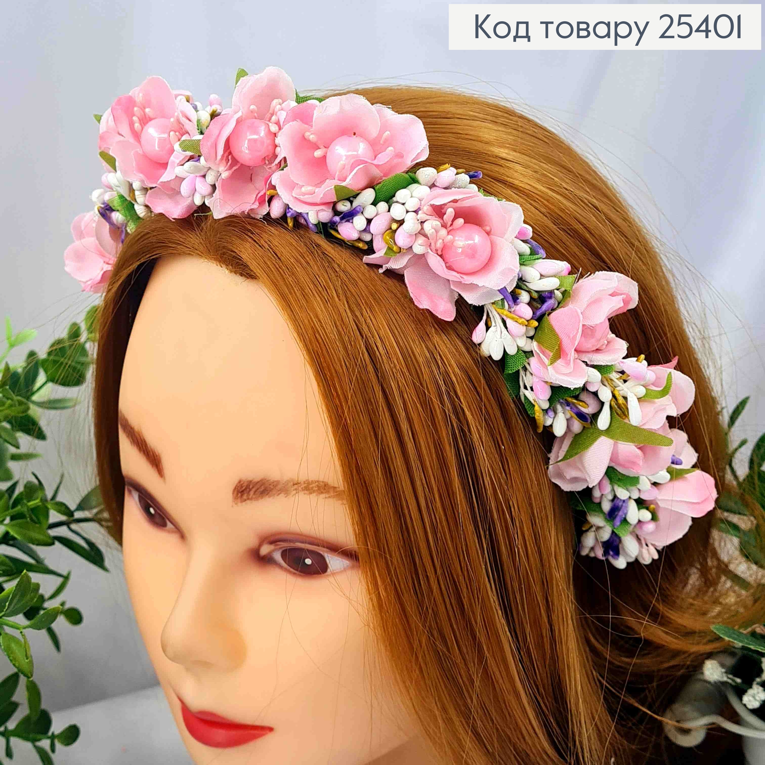 Обруч - венок, металл, РОЗОВЫЕ Цветочки с разноцветным приложением, ручная работа, Украина.